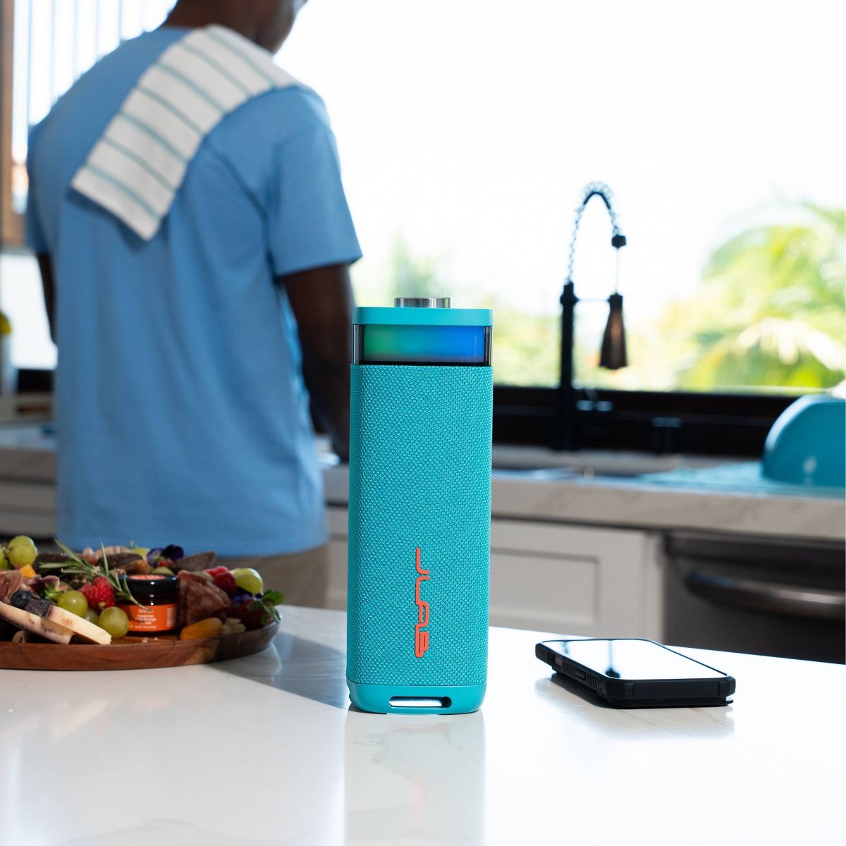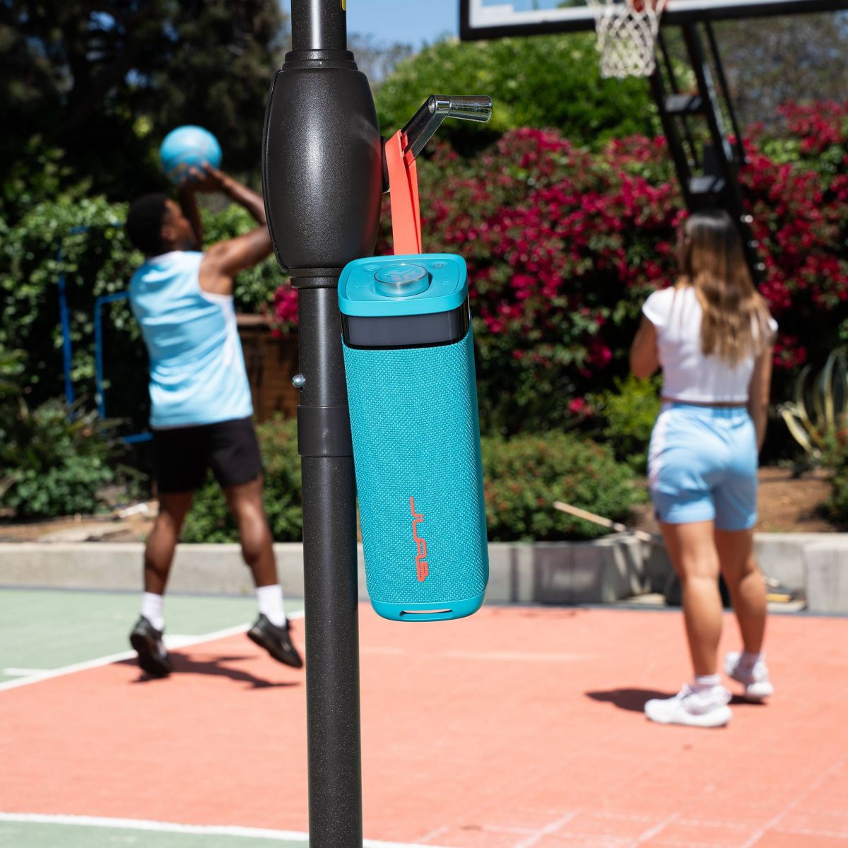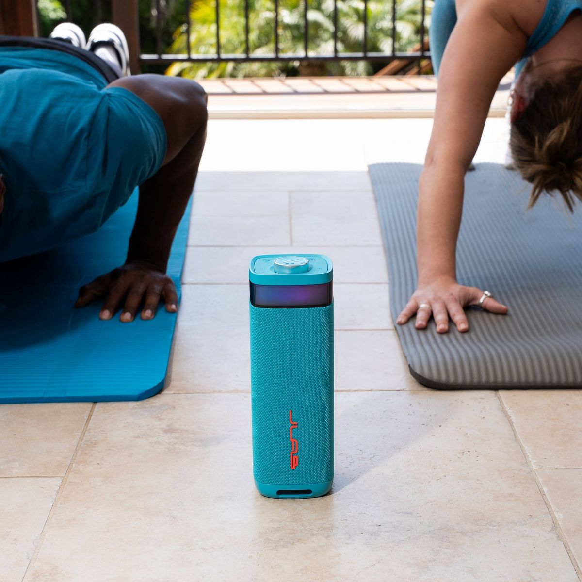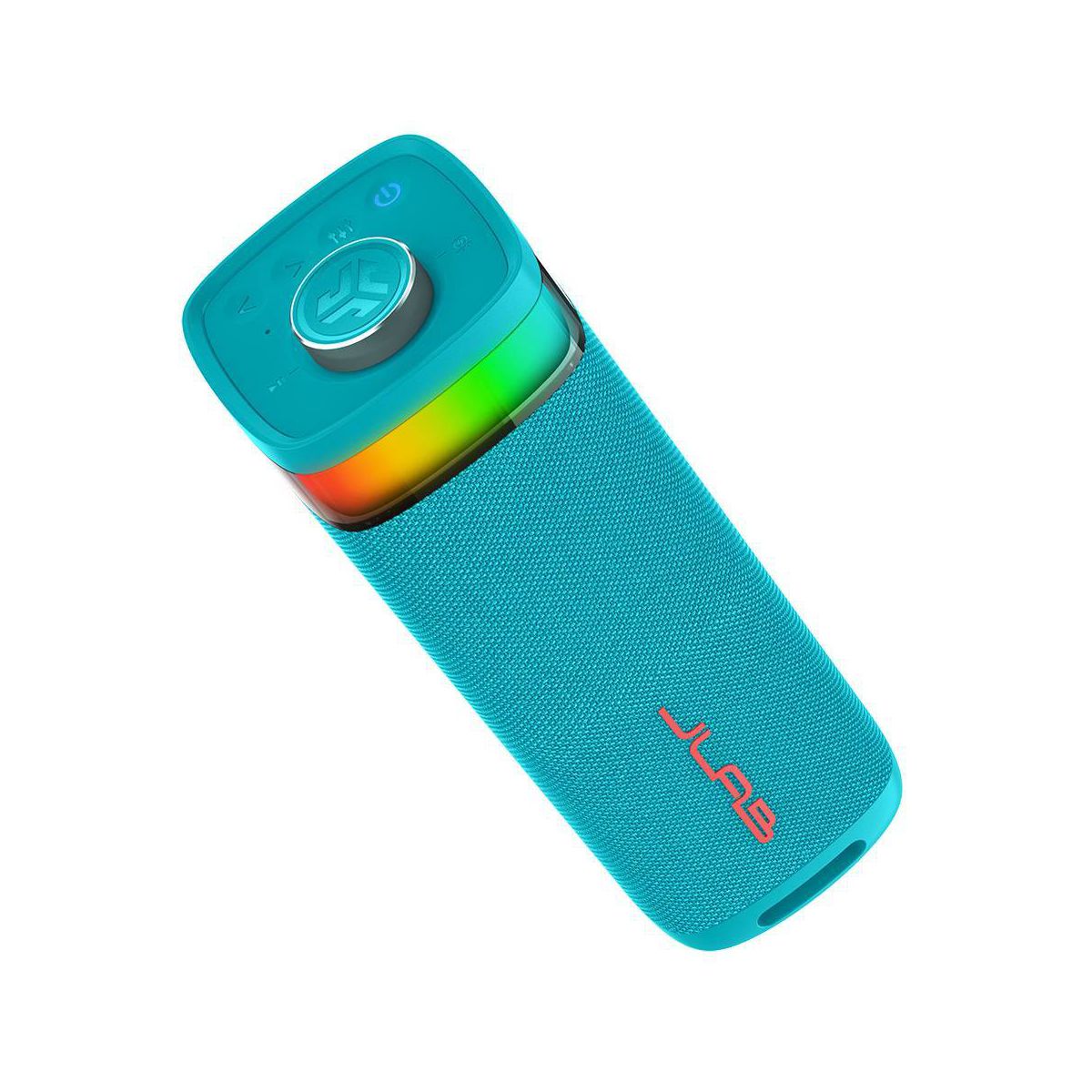 Power up your party anywhere with the JBuds Party Speaker, where intense next-level sound meets portability. This portable Bluetooth speaker unleashes 30 watts of incredible sound and delivers 12+ hours of playtime, enough for all day fun. Personalize your sound with customizable EQ settings and set the mood with dynamic RGB lighting effects all in the JLab App. Take control with the intuitive JLab Media Knob and four quick access buttons, or go big by connecting up to 100 JLab Party speakers with LabSync for a truly massive sound experience. With IPX6 waterproofing and a convenient loop strap, this speaker is ready to bring the party anywhere, anytime.