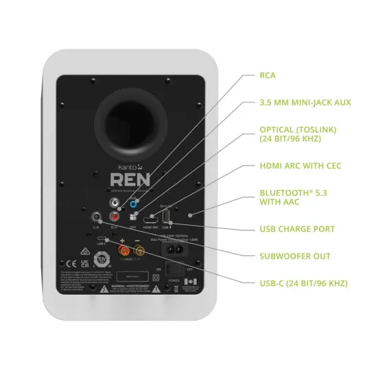 Enhance your audio experience with the Kanto RENMW Powered Bookshelf Speakers and SUB8VMW Powered Subwoofer bundle. The RENMW speakers offer a home theater-like experience with HDMI ARC integration and DSP-controlled stereo sound. Boosting vocals, reducing low frequencies, and offering various input options including Bluetooth 5.3 and USB-C, these speakers provide versatility and exceptional audio quality. With features like automatic standby mode and 200W peak power, the RENMW speakers ensure outstanding performance.