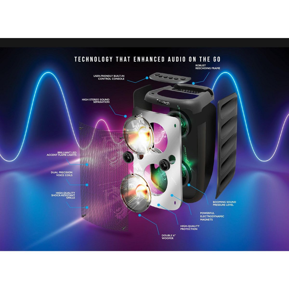 With powerful music power, the KL-66 delivers bold, clear sound that fills the room, whether you're hosting a party or relaxing outdoors. Its 6.5" woofer provides deep bass, ensuring your music sounds rich and immersive. Enjoy your favorite tunes with high-quality audio that's perfect for any occasion.