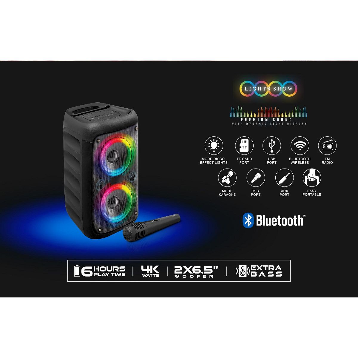 KL-66 Chroma Flicker Bluetooth Speaker, Disco Lights, Karaoke Mode