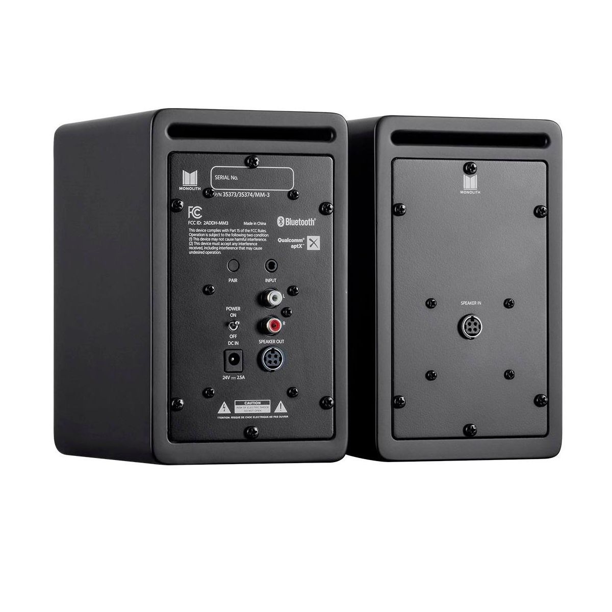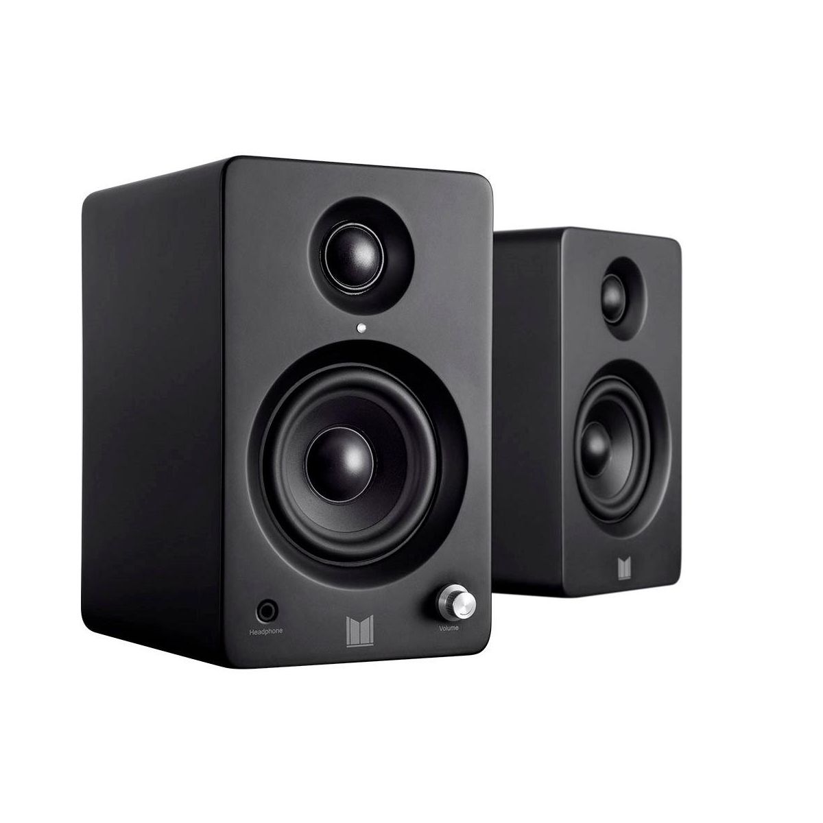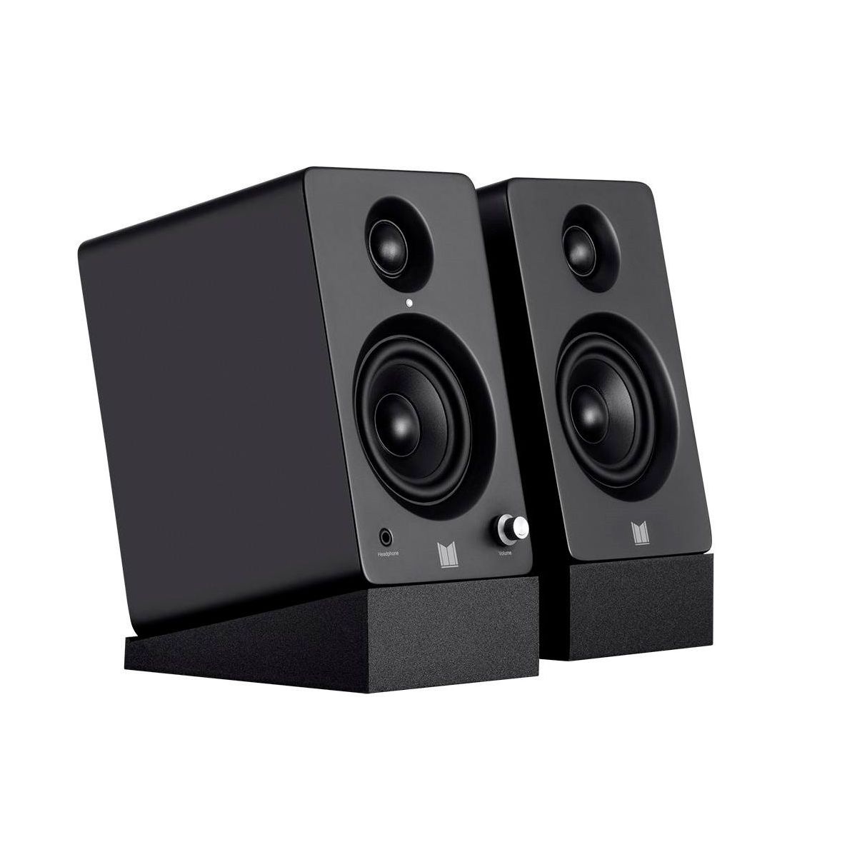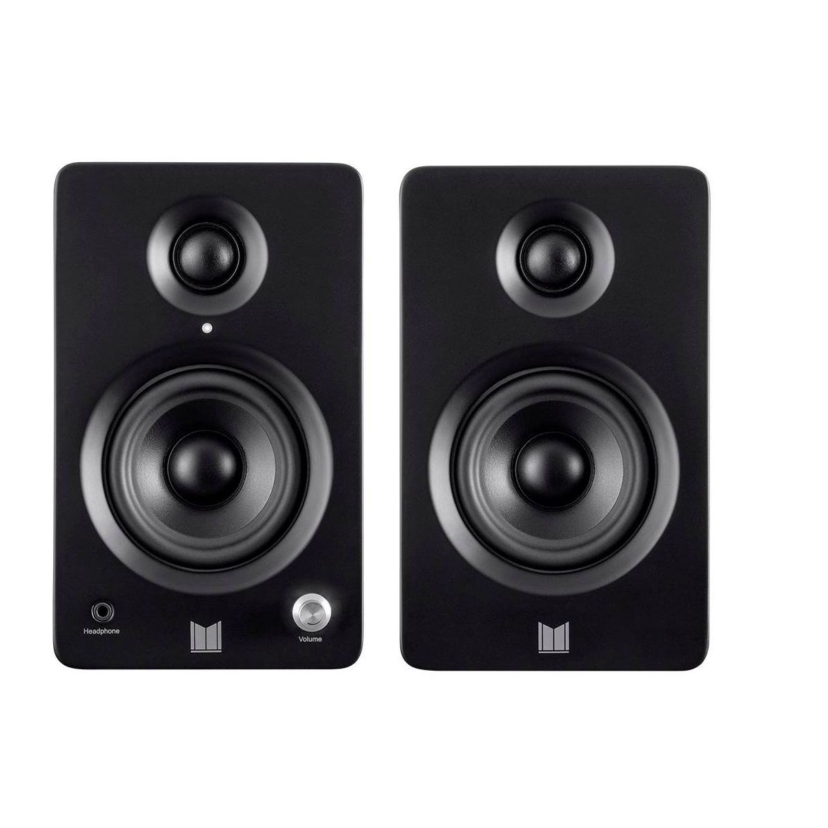 The Monolith MM-3 Speakers deliver audiophile performance for your desktop! Compact but mighty, these speakers feature exceptional sonic clarity, punchy bass, and present a spacious musical soundstage. Connect easily with RCA and 3.5mm wired inputs or pair your device wirelessly using the Bluetooth radio with the Qualcomm aptX audio codec. A headphone jack adorns the front, allowing you to easily switch between the speakers and headphones. The Monolith MM-3 powered speakers are a perfect, great sounding addition to a home office or bedroom.