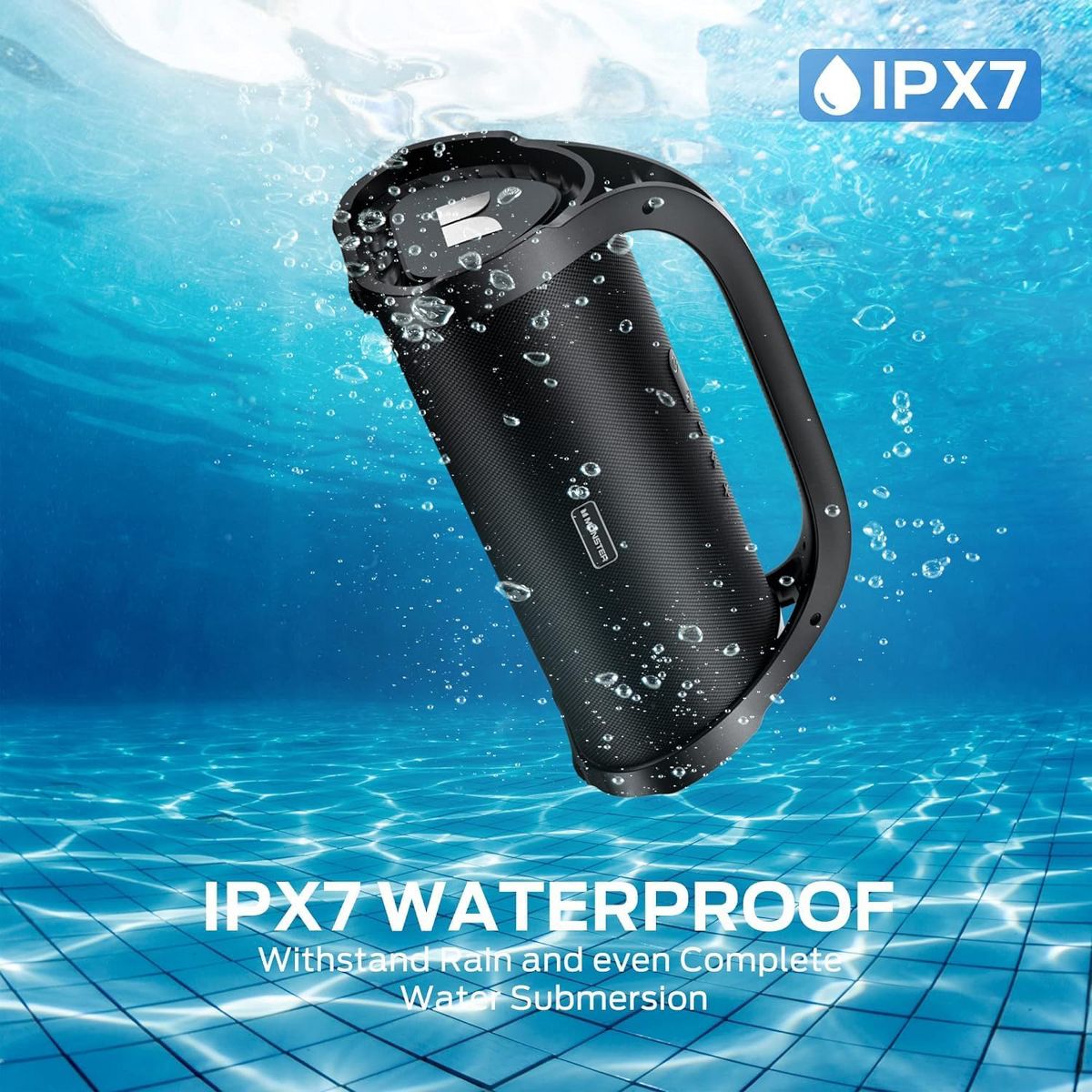 Monster Adventurer Max Boombox Bluetooth Speaker, 100W Stereo Sound, Double Subwoofer, IPX7 Waterproof, Wireless Speakers for Home, Party, Beach