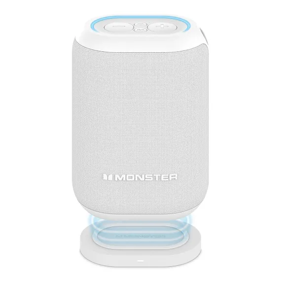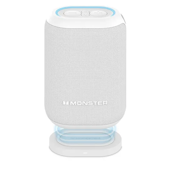 Monster DNA One Waterproof Portable Bluetooth Speaker with Omnidirectional Sound & Qi Wireless Charging Base (White)