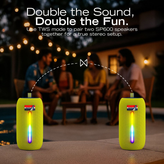 The Nautica SP600 Bluetooth Portable Speaker is here to bring the party wherever you go! With its stylish fabric cover and rubber soft-touch finish, the wireless speaker with Bluetooth functionality is as durable as it is good-looking. Packed with 15W PMPO power, the travel speaker delivers clear highs and deep bass, filling any room or outdoor space with vibrant sound. Bluetooth 5.3 ensures easy and stable connectivity up to 10 meters, and with TWS, you can pair two SP610s for a total of 30W of stereo sound. Enjoy up to 8 hours of playtime, and control everything with the easy buttons or switch up the vibe with 5 ambient light modes. Need a quick connection? Use the USB, SD, or AUX inputs to keep the music going! Plus, with an IP5 splash-proof rating, you can take this outdoor Bluetooth speaker anywhere without worrying about the weather. Add this rechargeable speaker to your collection of travel accessories today. This cool gadget is the perfect camping companion, beach vacation essential, festival essential, and everyday music player.
