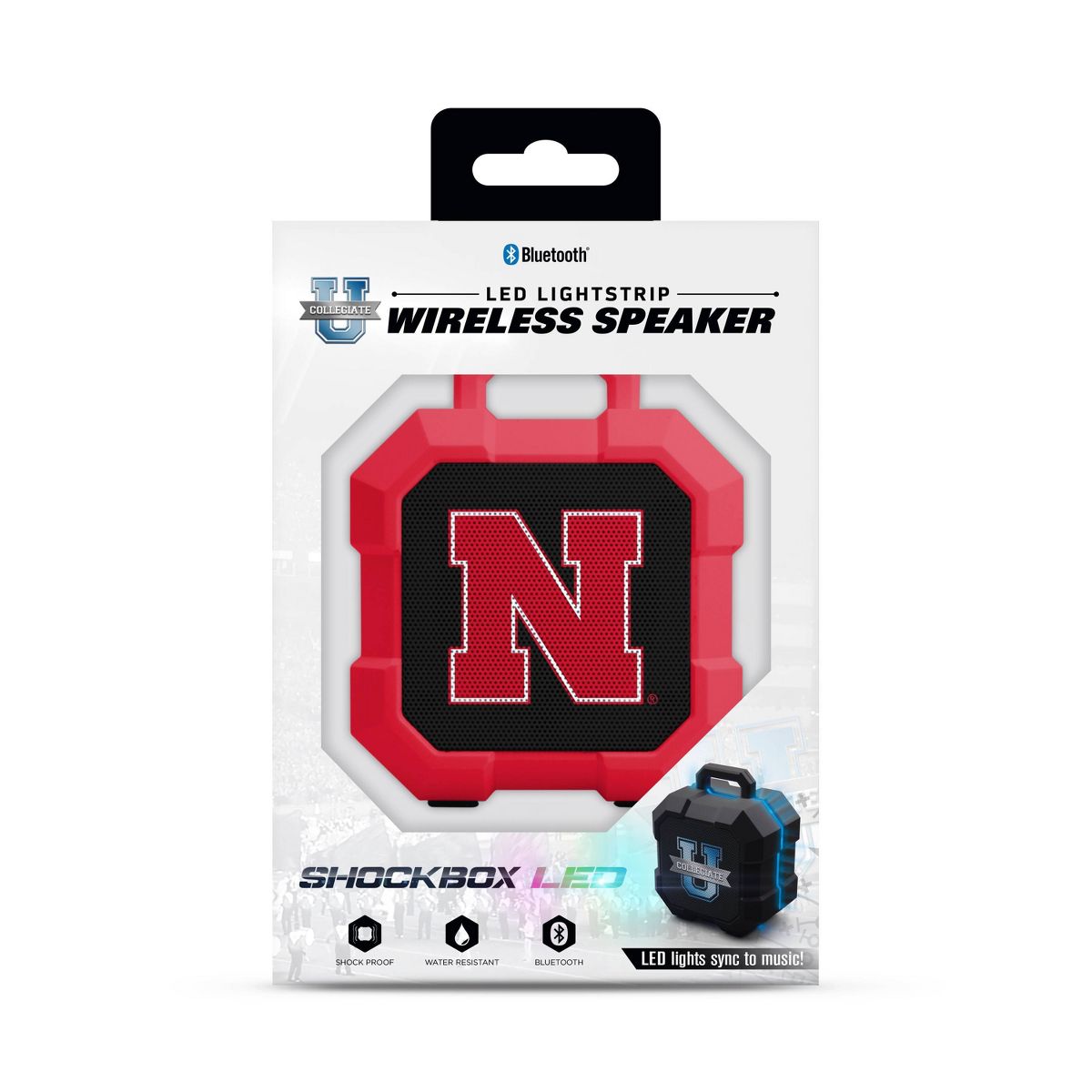NCAA Nebraska Cornhuskers LED Shock Box Bluetooth Speaker: Water-Resistant, Shockproof