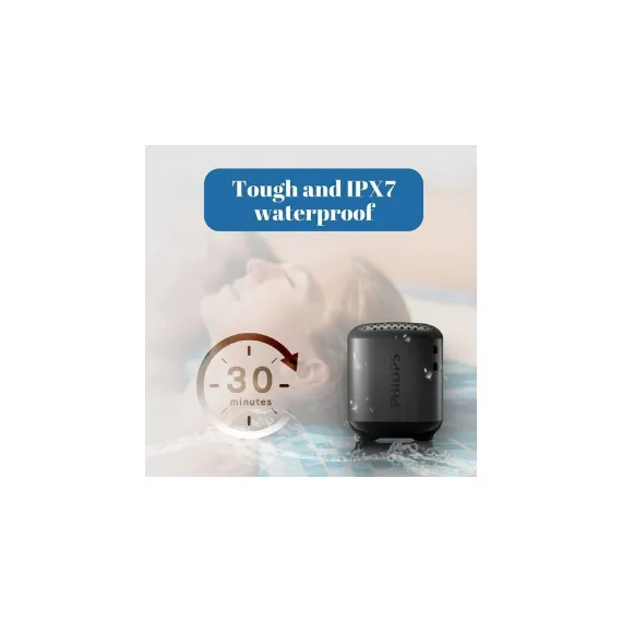 PHILIPS Water-Resistant Bluetooth Speaker, Compact Design, Built-in Microphone- Black