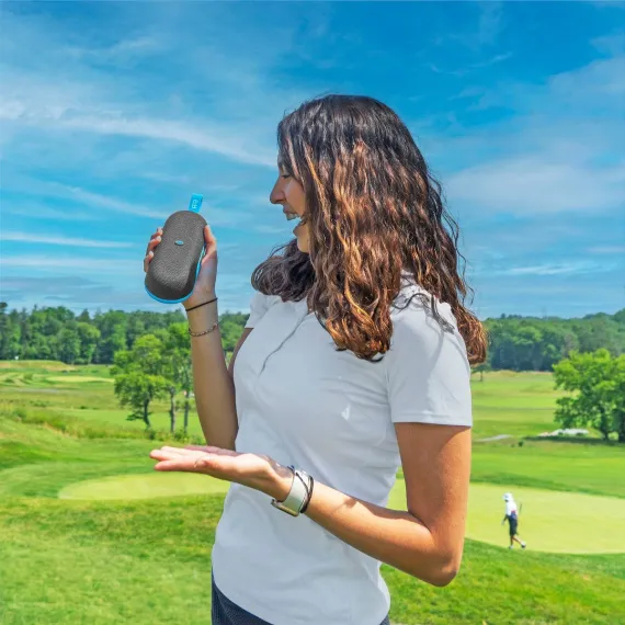 The integrated magnet makes it easy to attach to your golf cart for quick access, while the IPX7 waterproof rating ensures durability, even in the harshest weather conditions. Plus, its rechargeable lithium-ion battery offers over 10 hours of playtime, keeping you powered through your entire round.