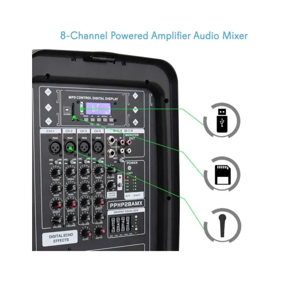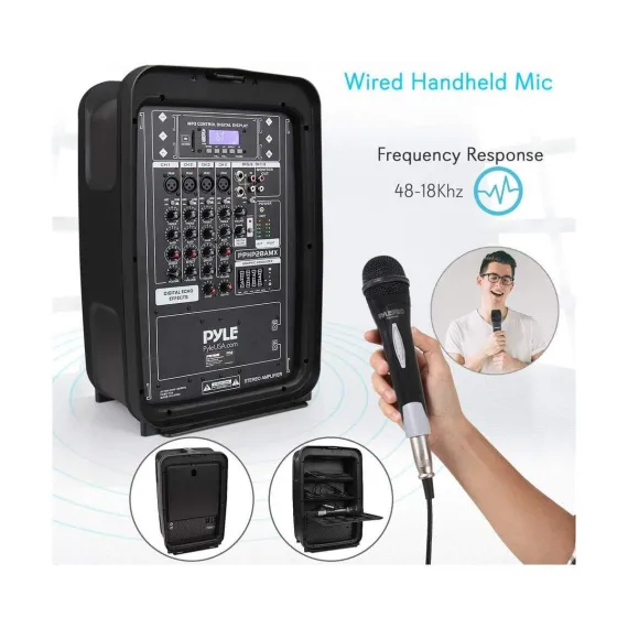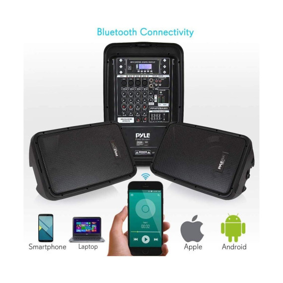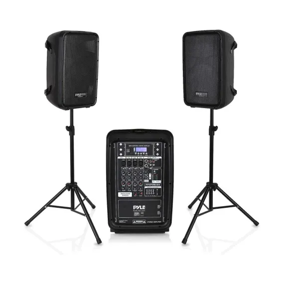 Elevate your audio experience with the Pyle 300W All-in-One DJ Speaker & Mixer Bundle Kit. This comprehensive kit features dual 8’’ PA speakers and an 8-channel powered amplifier mixer, delivering robust sound ideal for performances and events. With Bluetooth streaming capabilities, you can easily connect your favorite devices and play music wirelessly from up to 65 feet away. The active 2-way full-range stereo sound ensures clarity and depth, while the independent channel controls give you the freedom to adjust treble, bass, and effects to suit your needs. The rugged molded cabinet design is built for durability, making it perfect for on-stage performances and public gatherings. Whether you’re hosting a party or a professional event, this kit offers everything you need to bring your sound to life.
