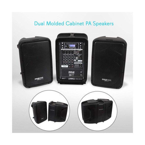 Pyle 300W All-in-One DJ Speaker & Mixer Bundle Kit - Bluetooth, 8-Channel Amplifier, 2 Speakers