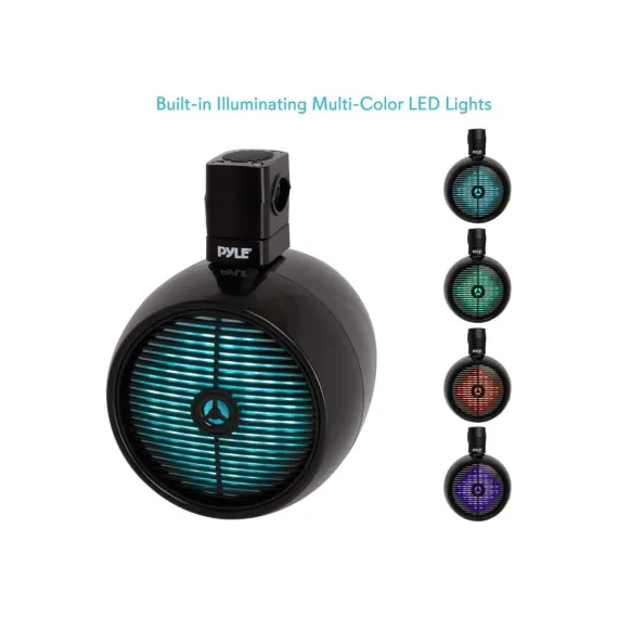 Pyle 8.0'' Waterproof Marine Wakeboard Tower Speakers with LED Lights (PLMRWB858LE) - Black