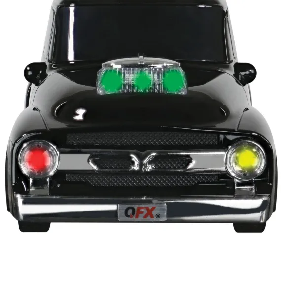 The Blue QFX BT-1956 is a 1950s-era truck-inspired portable, rechargeable Bluetooth speaker with dual 2-in. speakers, FM radio, and built-in LED party lights. It allows you to connect to Bluetooth and enjoy your favorite music or hands-free calling from your Bluetooth-enabled phone. It features a built-in microphone and headphone output and allows music playback from USB drives and microSD Cards plus has an aux input. Add a second BT-1956 and enjoy True Wireless Stereo (TWS) sound!