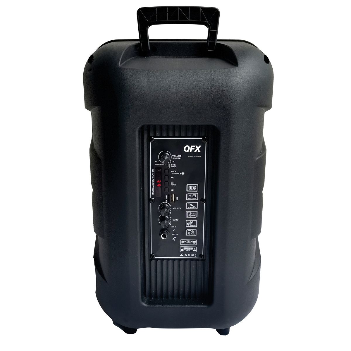 QFX® PBX-1206SM 12-In. 21-Watt True Wireless Stereo Bluetooth® Rechargeable Speaker with Wired Microphone, Stand, and Remote in Black