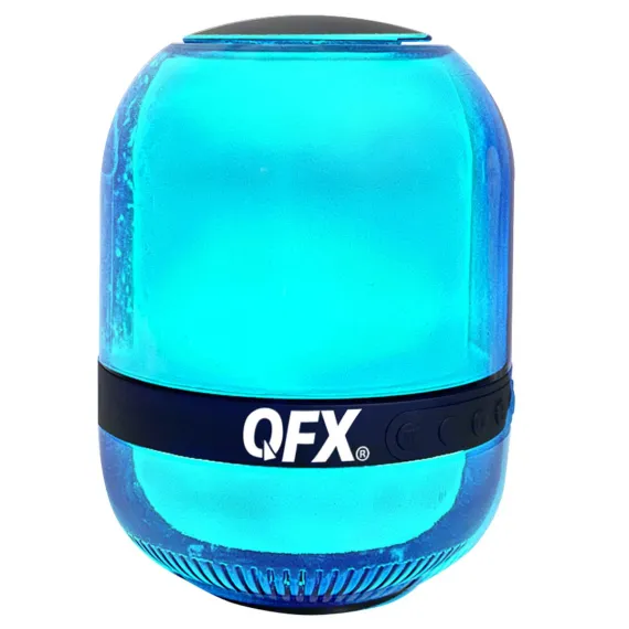 Hold this party starter in the palm of your hand! The QFX® BT-27 is a small, portable, rechargeable Bluetooth® speaker with multi-color LED party lights. Listen to your favorite music streaming over Bluetooth®. Turn on the FM radio or play music files stored on USB drives or microSD™ cards. Connect a portable audio device to the 3.5-mm aux input. Add a second BT-27 (sold separately) and enjoy True Wireless Stereo (TWS) sound!