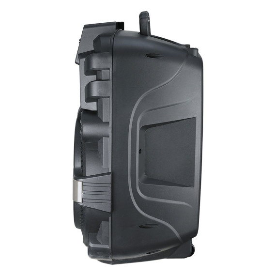 The QFX® PBX-158SM is a 15-in. rechargeable portable party system with speaker stand, wired microphone, lights, and remote . This versatile PA speaker system features brilliant RGB party lights and packs a punch delivering full-range audio along with separate bass and treble controls. Connect the included wired microphone, adjust the microphone’s echo and volume, and you’ve transformed your speaker into a karaoke machine. Keep the party alive with brilliant RGB LED party lights while playing music from a variety of sources including Bluetooth®-enabled devices, music stored on USB drives, microSD™ Cards, or connect your favorite portable audio player directly to the 3.5-mm aux input. Add a second PBX-158SM (sold separately) and enjoy True Wireless Stereo (TWS) sound!