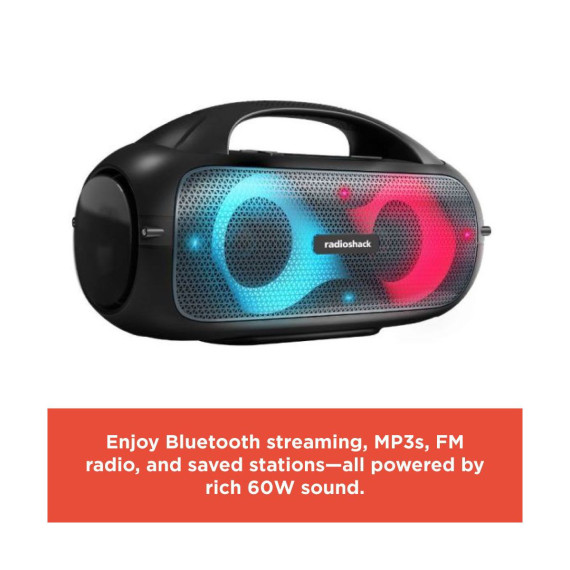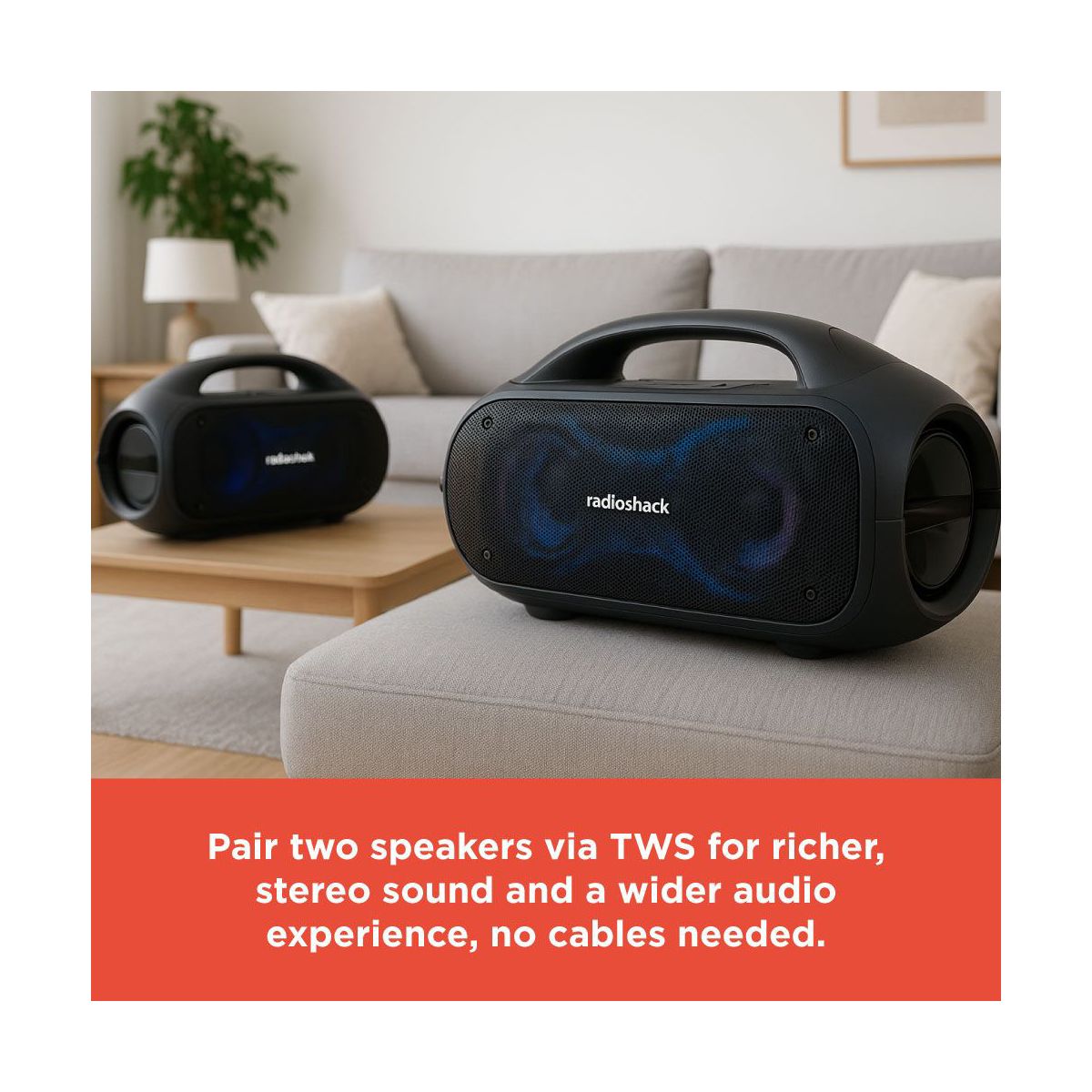 RadioShack 60W Black and Gray Wireless Portable Speaker With Lights True Wireless Audio And Type C-Charging Cable 4001787