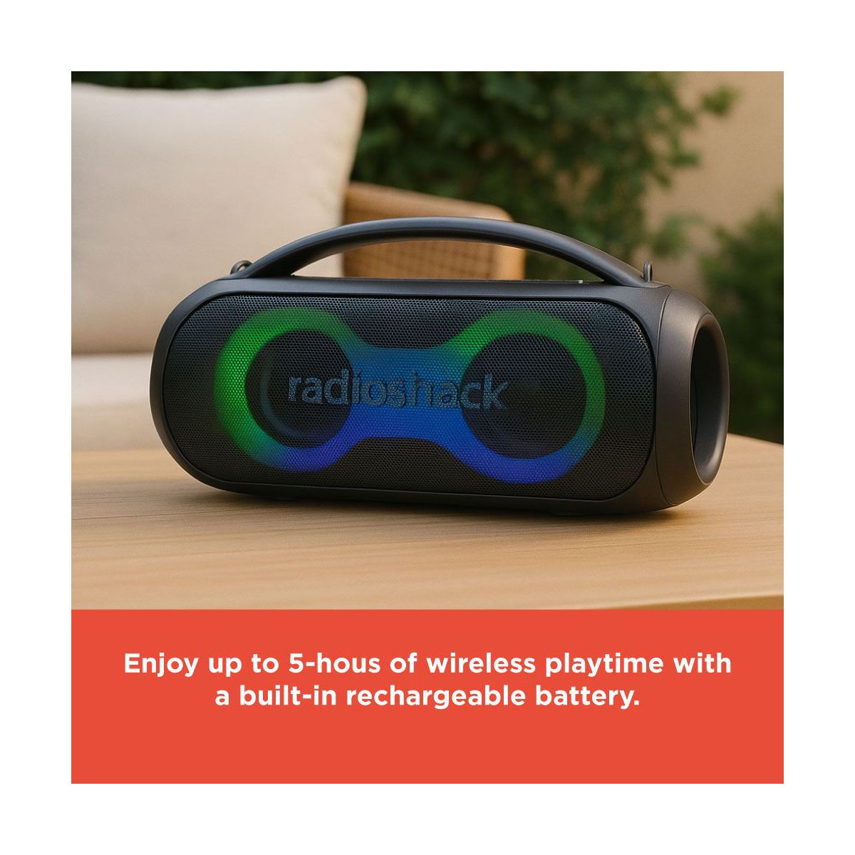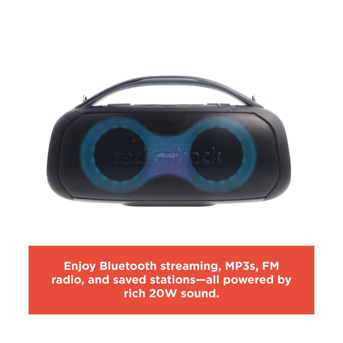 RadioShack Portable Bluetooth Speaker 20W IPX5 Blue/Orange With RGB Lights And Handle with TWS For Pairing
