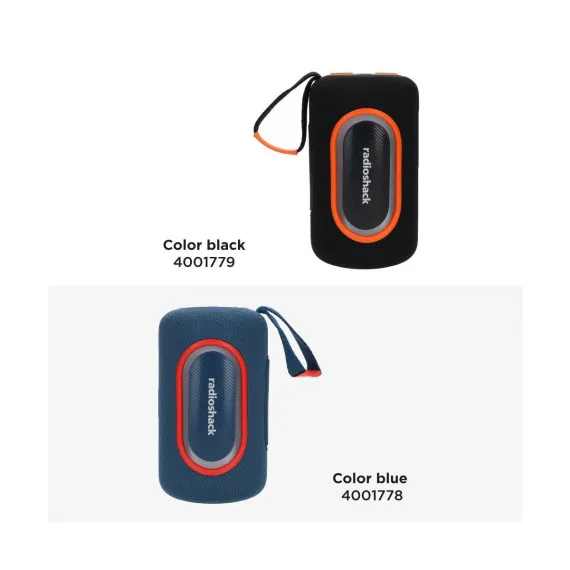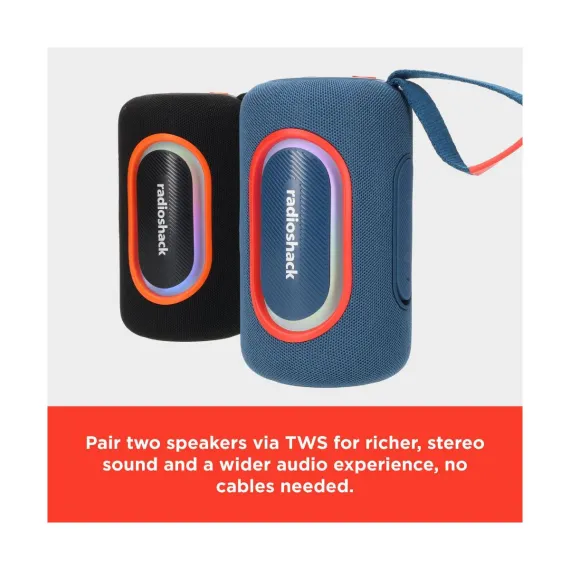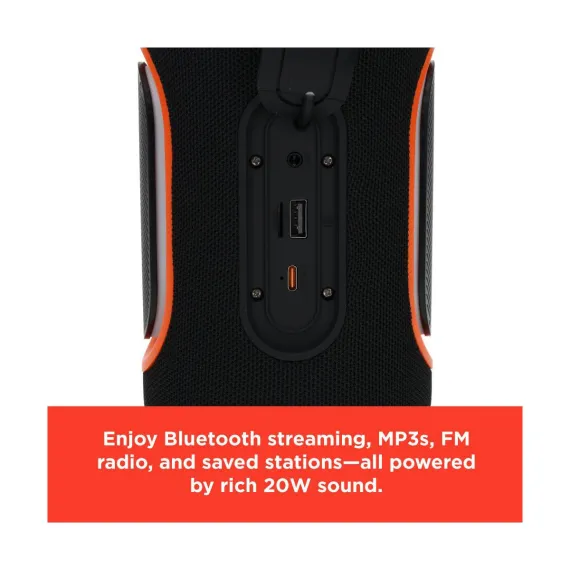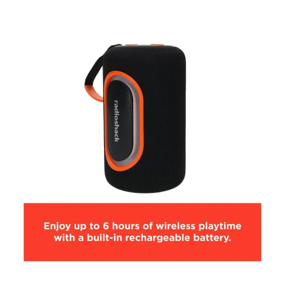 RadioShack Portable Bluetooth Speaker 20W IPX5 Splashproof Black and Orange With RGB lights and Strap with TWS For Pairing