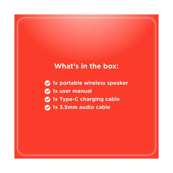 A 20W speaker with dual 57mm drivers and vibrant RGB lighting, offering Bluetooth 5.3, MP3, FM, TWS, U disk, TF, and AUX playback. The 3600mAh battery provides 4–6 hours of music, and the compact IPX5 build with memory function is perfect for indoor and outdoor fun.