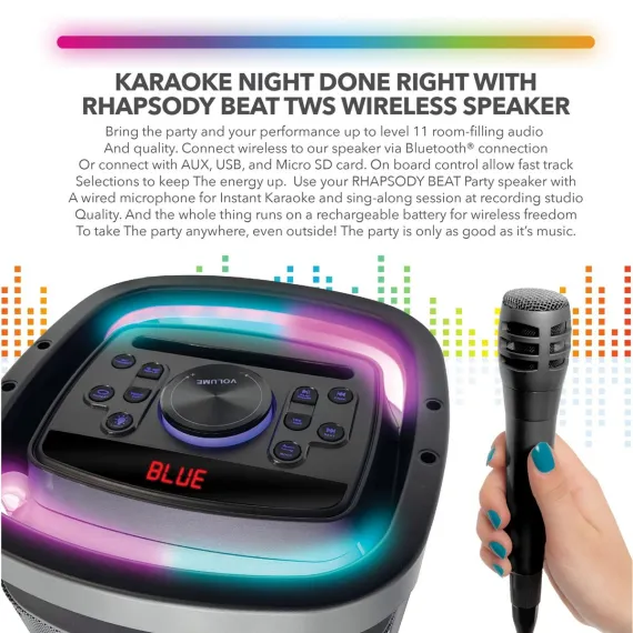 The RCA Disco 2108 showcases captivating flame LED lights that transform any event into a vibrant spectacle. With its mesmerizing 7-colored neon light show, the speaker enhances the atmosphere, creating a visually stunning backdrop for your celebrations. Whether it's a birthday party, a wedding reception, or a casual get-together, these lights pulse and change with the rhythm of your music, ensuring that your guests are not only listening but also experiencing the fun!