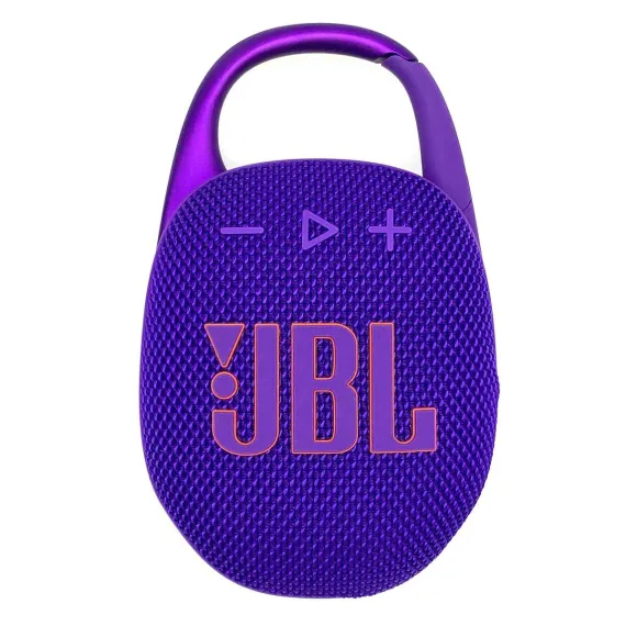 The JBL Clip 5 ultra-portable Bluetooth speaker is small enough to hold in one hand, but do not let the size fool you, it is big where it counts. A wide, fully integrated carabiner is big enough to clip to just about anything. The powerful driver and passive radiator deliver bigger, louder JBL Pro Sound and punchy bass. A single charge gives you up to 12 hours of playtime and even more if Playtime Boost is turned on. Speaking of outside, it is IP67-certified waterproof and dustproof, so it is a natural to take on your next hike or camping trip. Pair two Clip 5 together for stereo sound, or instantly connect it with multiple JBL Auracast-enabled speakers for even bigger sound over more space. Plus it is available in a variety of colors, so you are sure to find one that fits your vibe. Every day is an adventure with the JBL Clip 5.