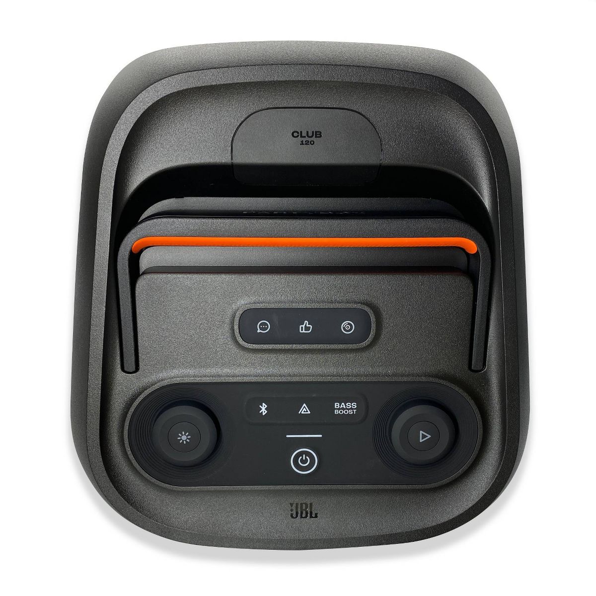 Pure party energy. The JBL PartyBox Club 120 turns any space to party, and vibe. Powerful JBL Pro Sound fills the air while an entrancing lightshow of starry lights, cool light trails, and strobe effects syncs to your beat. Instantly pair any Bluetooth device and stream your favorite party playlist, or use the mic and guitar inputs to share your own sound. Either way, you can steer the partys flow with fun interactive party effects using the JBL PartyBox app. A folding ergonomic handle makes the PartyBox Club 120 easy to take with you anywhere, and the splash-proof construction means it will not be troubled by a little rain. It delivers up to 12 hours of playtime and if the partys still flowing by then, just swap out the replaceable battery and keep the music and lights going strong. For an even bigger time, stereo pair two JBL PartyBox Club 120s for a wider soundstage, or use the JBL PartyBox app to connect multiple JBL Auracast-enabled speakers wirelessly. Roll up to the party with the JBL PartyBox Club 120.