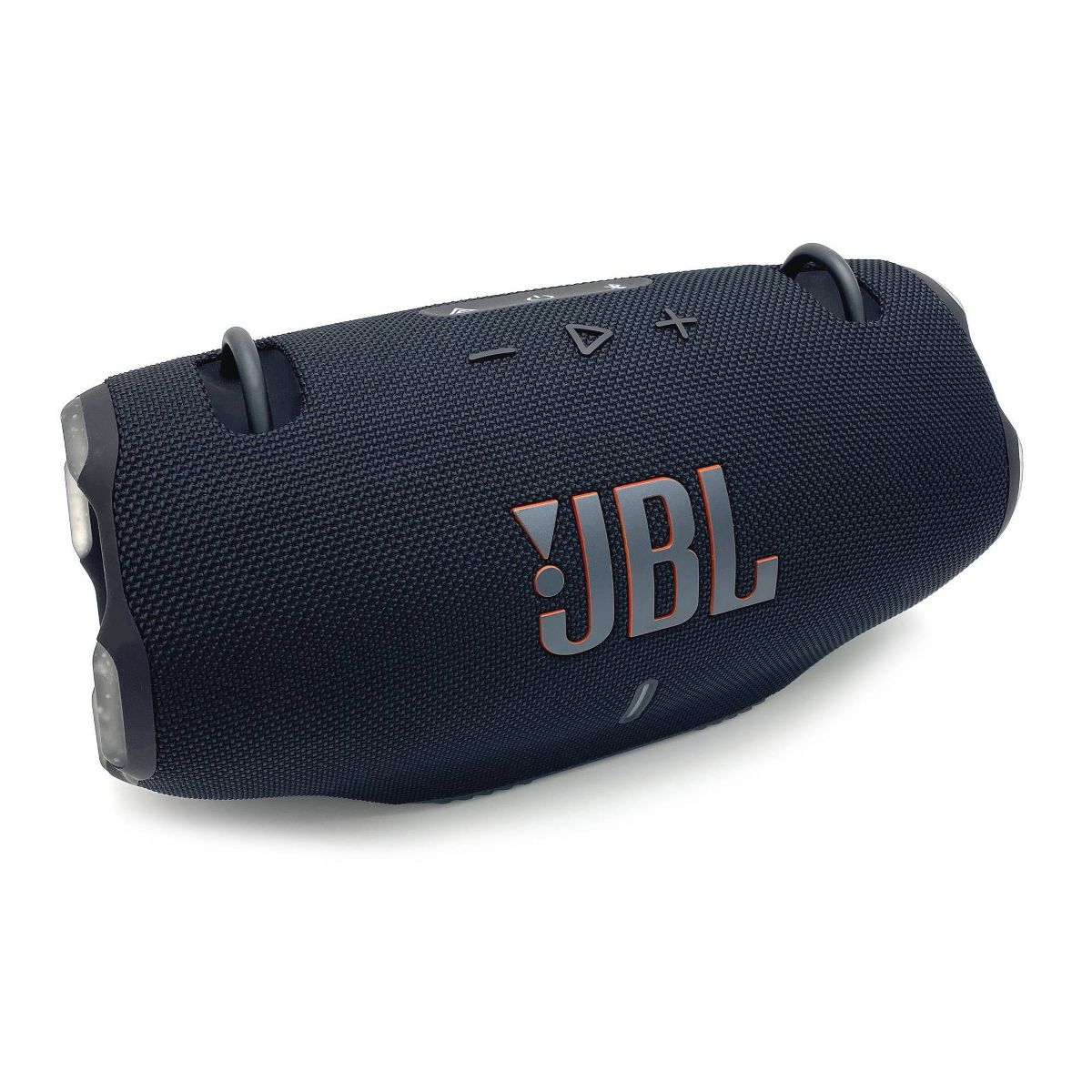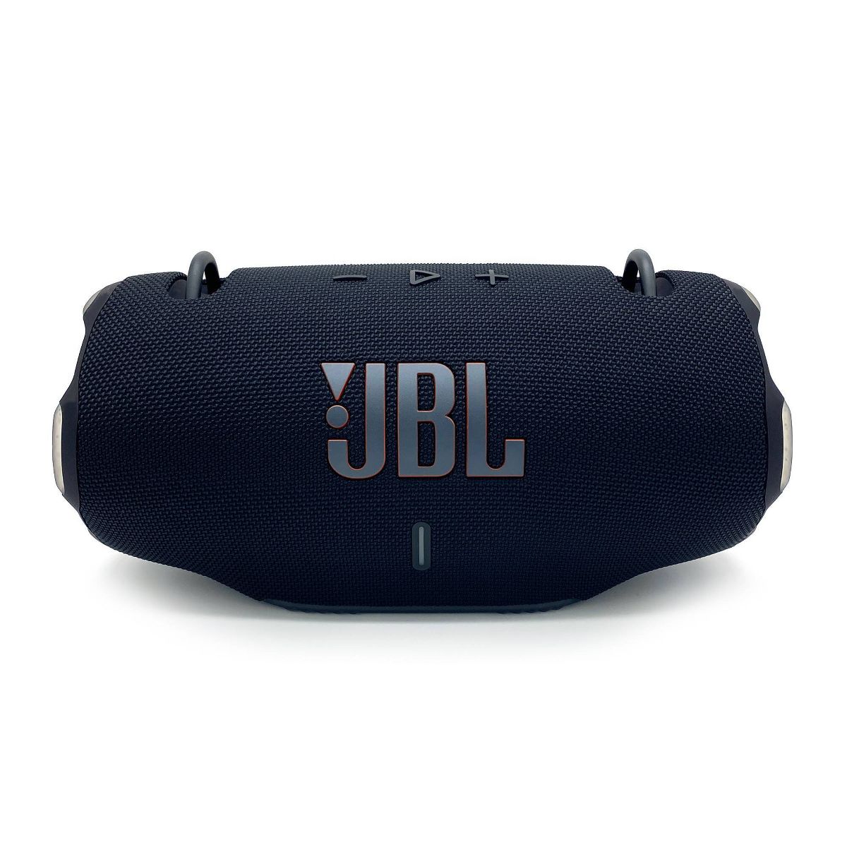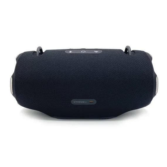 The JBL Xtreme 4 portable waterproof speaker delivers next-level massive JBL Pro Sound with amazing dynamics, even at top volume, thanks to two powerful woofers and two tweeters. Dual pumping JBL passive radiators give you deeper bass that moves you. Want to take your music outside? The handy shoulder strap makes it easy, while the rugged rubber bumpers and IP67 waterproof and dustproof rating mean that a sudden downpour or a dunk in the lake will not stop the fun. When it is time to create an even bigger audio experience, pair two Xtreme 4s for stereo sound. Or for your next party, use Auracast to connect the Xtreme 4 with any compatible JBL portable speakers, so your friends lounging poolside will vibe to the same playlist as the ones chatting indoors. 24 hours of playtime and a convenient power bank for your device mean you will not have to recharge until morning. All this, plus it is made with recycled plastic and recycled fabric. The JBL Xtreme 4 brings thrilling sound with you everywhere.