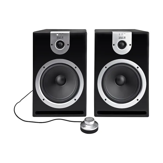 The Wave Monitoring Station - a practical monitoring powerhouse for every DJ and producers setup, featuring precise playback and powerful output. Perfect reference monitors for DJs and producers - The innovative design makes them ideal for DJs monitoring their live mix in the booth. Producers will also appreciate the Reloop Waves series as reference monitor speakers for studio applications. External wave controller - With the External Wave Controller, its simple to control both speakers from desktop (connected via a link cable). With the extra large aluminum knob, the volume can be adjusted effortlessly, and via the Input Selector, can quickly toggle between the three different inputs options (each indicated by a white LED on the front). A switch can be used to set the station on stand-by, and with a push of a button, the output can be muted (LEDs dim according to the status). Powerful rich sound - Thanks to the variable EQ and frequency band adjustments, the Wave series can be adapted to almost any room or situation without a sub mixer. The smart tweeter construction has an especially wide audio beam in order to deliver outstanding sound to the listener from various positions, and strong magnetic drivers create the powerful sound demanded by discerning DJs and producers.