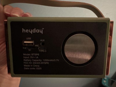 Bring back the vibes with a modern twist using the Retro Tech Wireless Bluetooth Speaker from heyday™. This compact yet powerful speaker blends vintage-inspired style with the latest Bluetooth connectivity for seamless wireless streaming. With a rechargeable battery that offers up to 8 hours of playtime, it's perfect for music on the go. The USB-C connection ensures fast and efficient charging, so you’re always ready to hit play. Whether you're hosting a get-together or just chilling solo, this speaker delivers rich, retro sound with convenience.