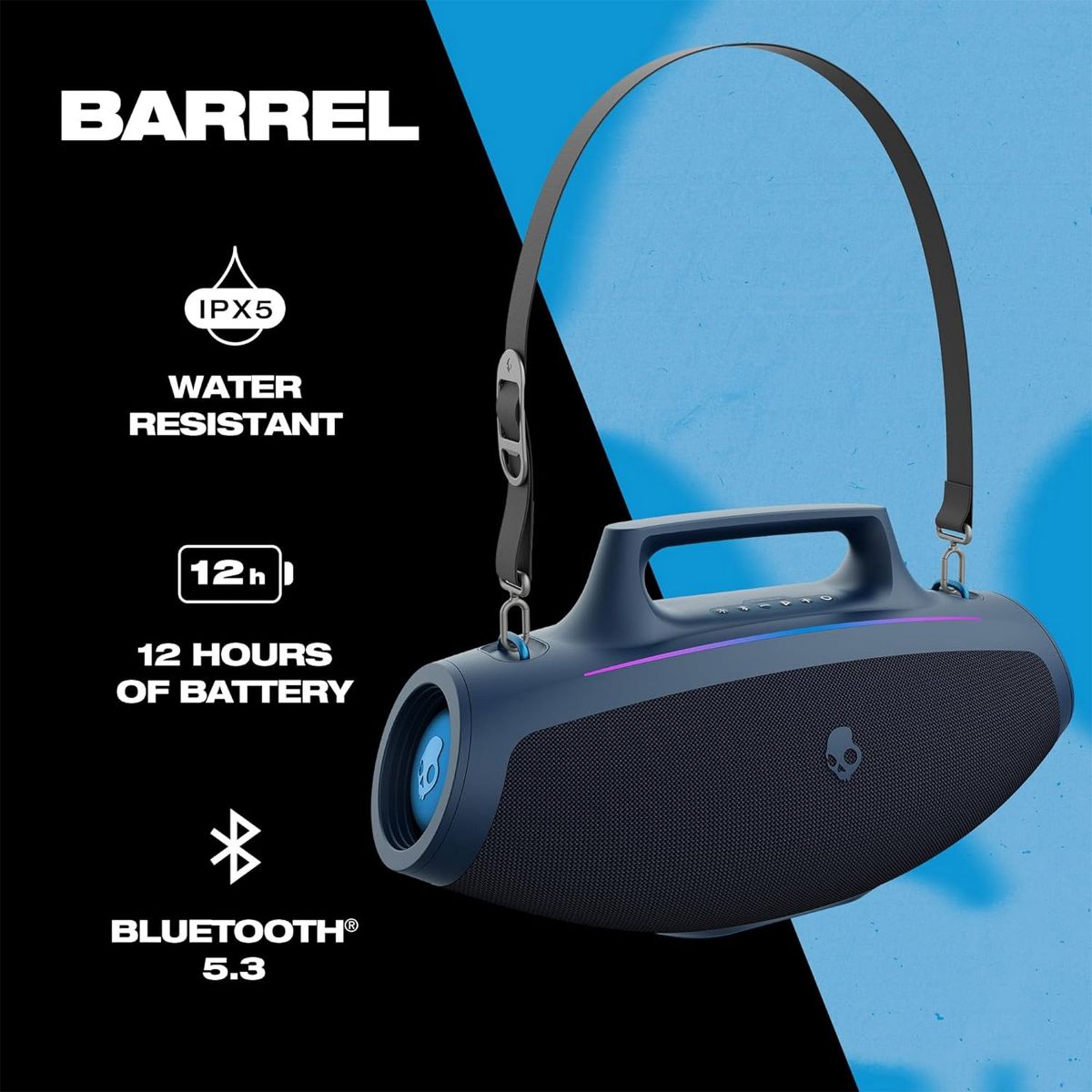 Skullcandy Barrel Bluetooth Boombox Speaker – Water-Resistant Portable Speaker, with LED Lightshow Mode, 12 Hour Battery, Multi-Link