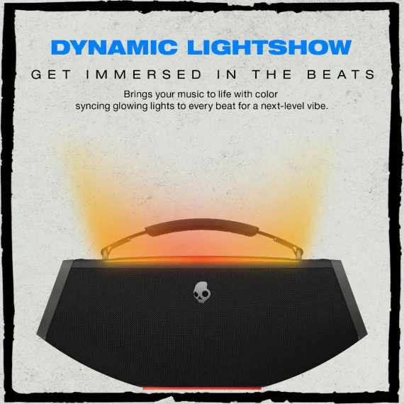 Stay in the groove all day with 12 hours of battery life. When it’s time to go big, SKDY Multi-Link pairs up to 99 compatible wireless speakers into one massive, synchronized sound system at the push of a button. Add color-syncing LED lights that pulse with the beat, and you’ve got a show for your ears and your eyes. The attachable handle and strap make it easy to carry your way, so you can take your music anywhere.