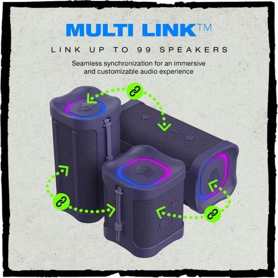 Skullcandy Terrain 2 Wireless Bluetooth Speaker, IPX7 Water Resistant, 14H Battery, Multi-Link, LED Light Show, Portable, Deep Purple