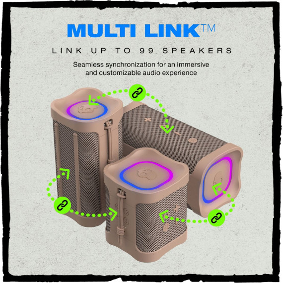 Skullcandy Terrain XL 2 Wireless Bluetooth Speaker, IPX7 Water Resistant, 18H Battery, Multi-Link, LED Light Show, Portable, Tan