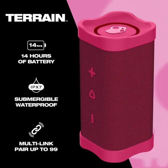 Skullcandy Terrain XT Wireless Bluetooth Speaker - IPX7 Waterproof, Portable, 14 Hour Battery, Nylon Wrist Wrap, & True Wireless Stereo, Pink