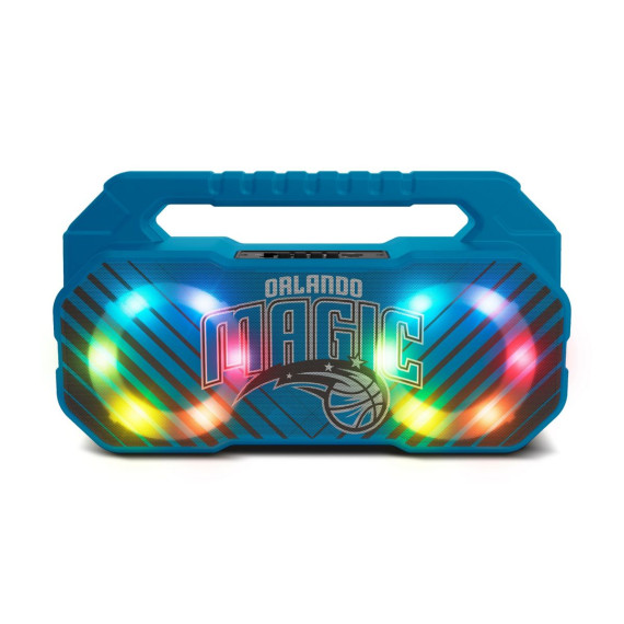 The Boombox Speaker delivers dynamic sound with 2 x 5 Watts of power and versatile connectivity options. Featuring a built-in FM radio, LED light show, and sportscaster-inspired voice prompts, it enhances any game day event. Portable and long-lasting, it keeps the party going for up to 8 hours on a single charge.