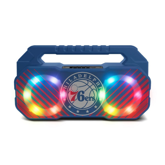 The Boombox Speaker delivers dynamic sound with 2 x 5 Watts of power and versatile connectivity options. Featuring a built-in FM radio, LED light show, and sportscaster-inspired voice prompts, it enhances any game day event. Portable and long-lasting, it keeps the party going for up to 8 hours on a single charge.