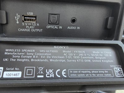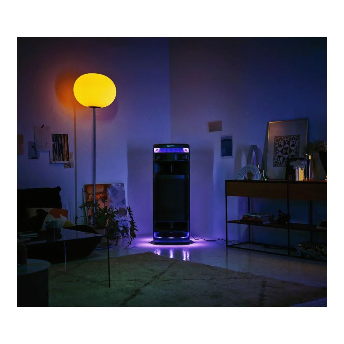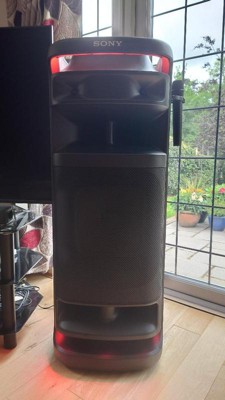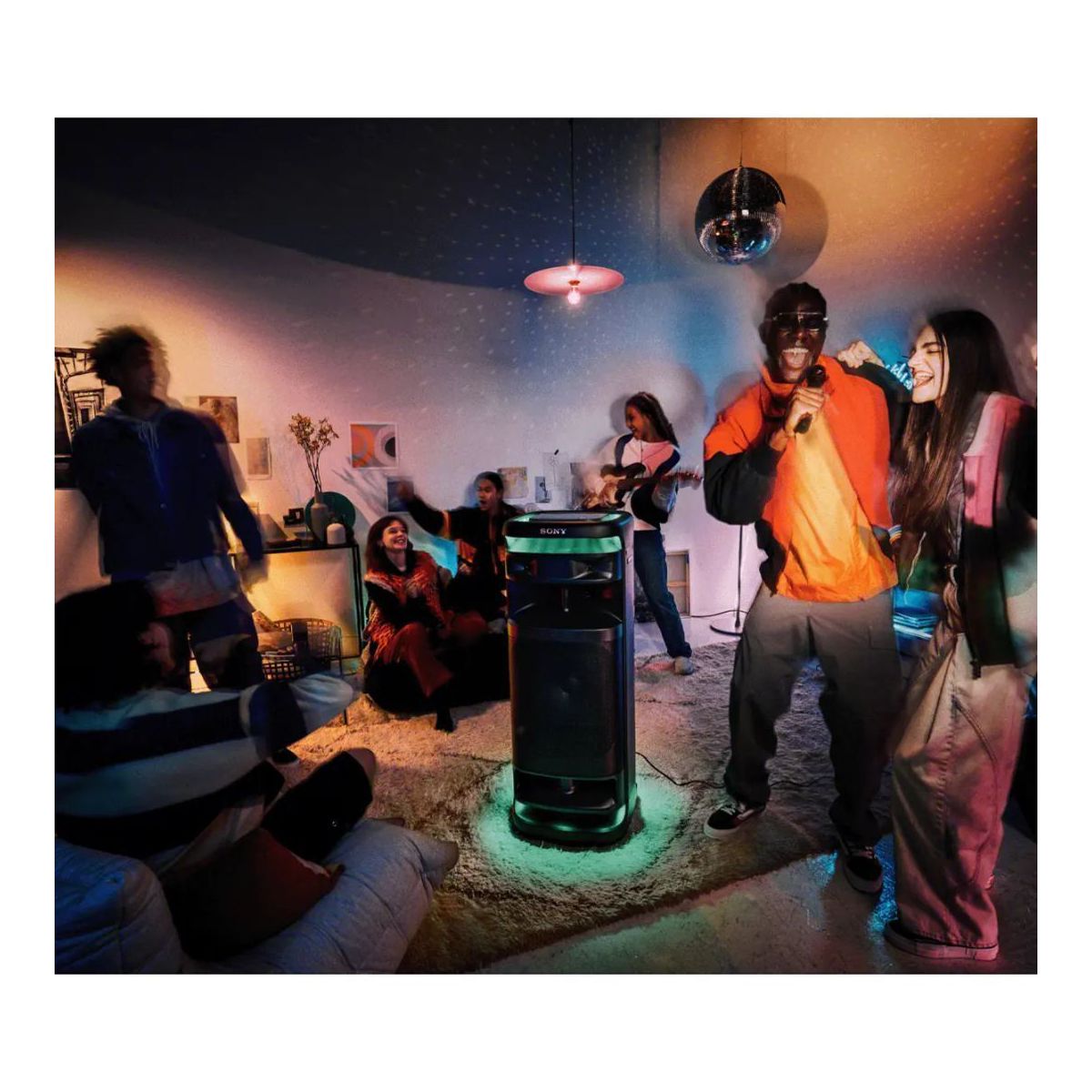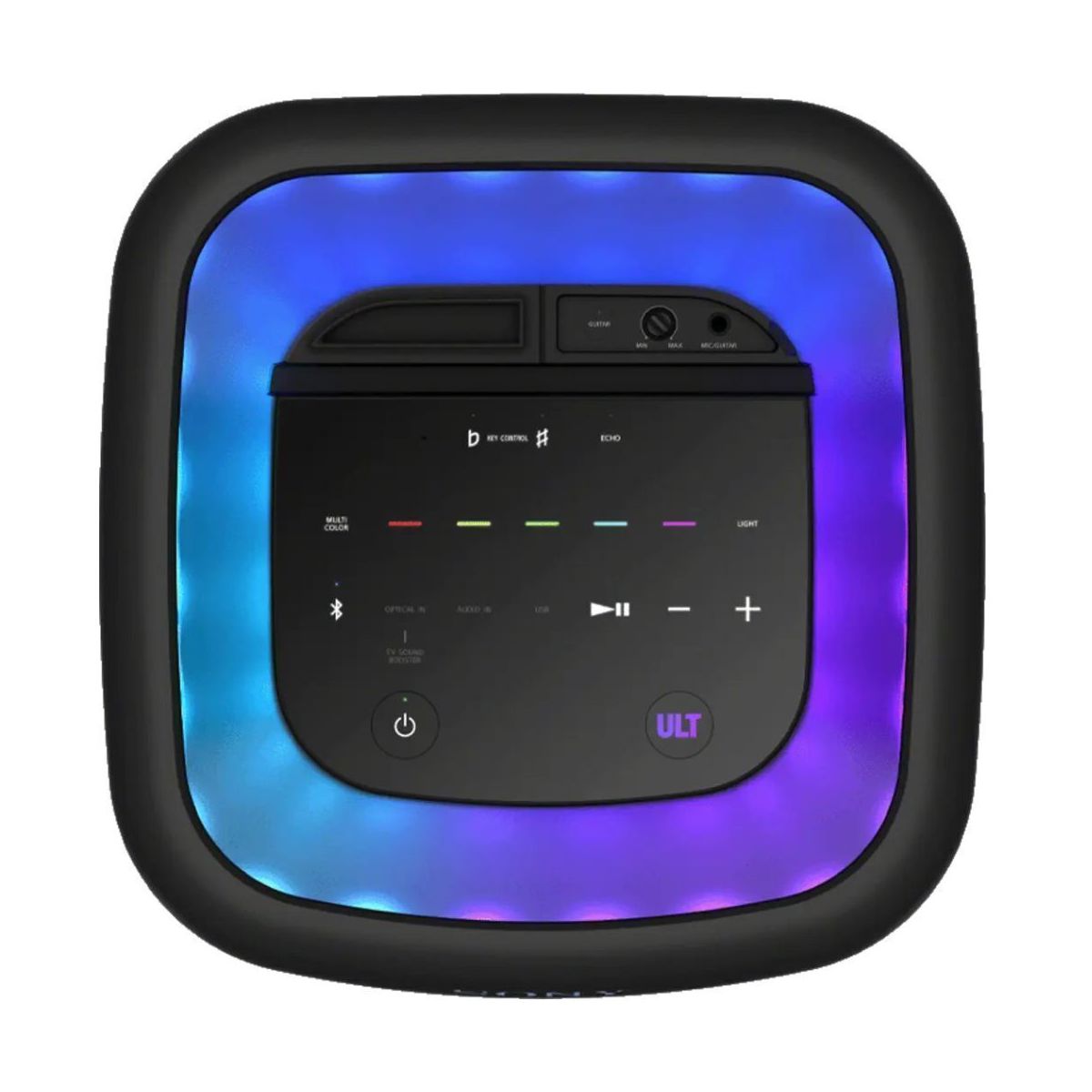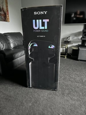 Turn your home into party central with massive bass, 360-degree party sound, 360-degree party light, and karaoke with the Sony ULT TOWER 10 Party Speaker, thanks to a supplied wireless microphone. You can even connect the speaker to your TV to boost the sound of the things you love to watch.Massive Bass, Ultimate VibeDive into the front row of a concert with the ULT POWER SOUND series. Built for music lovers, it produces powerful deep sound designed to make your heart tremble. Prepare to feel the bass.Power your Favorite MusicEnhance all your low-end frequencies for exceptional bass. Enjoy two different types of bass-emphasized sound. Powerful bass to feel the beat and get you dancing. Deep bass boost for low-frequency sound that will make your heart tremble. Its combination of powerful sound and a 360-degree party light will have you feeling like you’ve brought the concert venue home.Get Your Karaoke OnBelt out your favorite songs, thanks to the included wireless microphone. Plus, you can turn this party speaker into an amp for your guitar.Hit the Button, Feel the BassPress the ULT button to enjoy two different sound modes: ULT1 for deeper, lower frequency bass, ULT2 for powerful, punchy bass.Powerful Sound Everywhere360-degree party sound carries powerful sound to every corner of the room. Four tweeters deliver clear sound to both the front and rear of the speaker, with two mid-range speakers for vocal clarity. The large X-Balanced Speaker Unit power the bass sound. These features work in tandem to deliver an unmatched audio experience to everyone, wherever they are.Powerful Sound with X-Balanced Speaker UnitThe X-Balanced Speaker Unit features an almost rectangular diaphragm, for an increased surface area compared to conventional speaker units. The approximate 320 mm x 320 mm large woofer unit gives clear and deep bass sound.Richer, Clearer, Deeper ExperienceThe non-circular diaphragm not only maximizes the area of speaker, but also increases sound pressure for deeper, punchier bass, less distortion and greater vocal clarity. All designed to elevate your listening experience.Sound Field OptimizationBy detecting local noise in the environment, the speaker adjusts the sound setting in between tracks to deliver clear music even when you are surrounded by other sounds.7-Band EqualizerSelect your favorite sound setting and listen to your music exactly as you like it.360-Degree Party LightWith its vibrant lighting, the ULT TOWER 10 brightens up every corner of your party. It even synchronizes with the music to create a true festival feeling.Get Your Karaoke OnBelt out your favorite tunes, thanks to the included wireless microphone, and enjoy complete control of your sound, with Echo and Key Controls on the top panel. You can plug in another microphone for a duet or a guitar to play along using the ULT TOWER 10 as an amp.