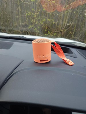 Very happy with this speaker. It’s compact but punches above it’s weight where the volume is concerned. The sound is very crisp and clear too. I Also like the fact you can hang it from your bag, belt or tent pole or anything really.