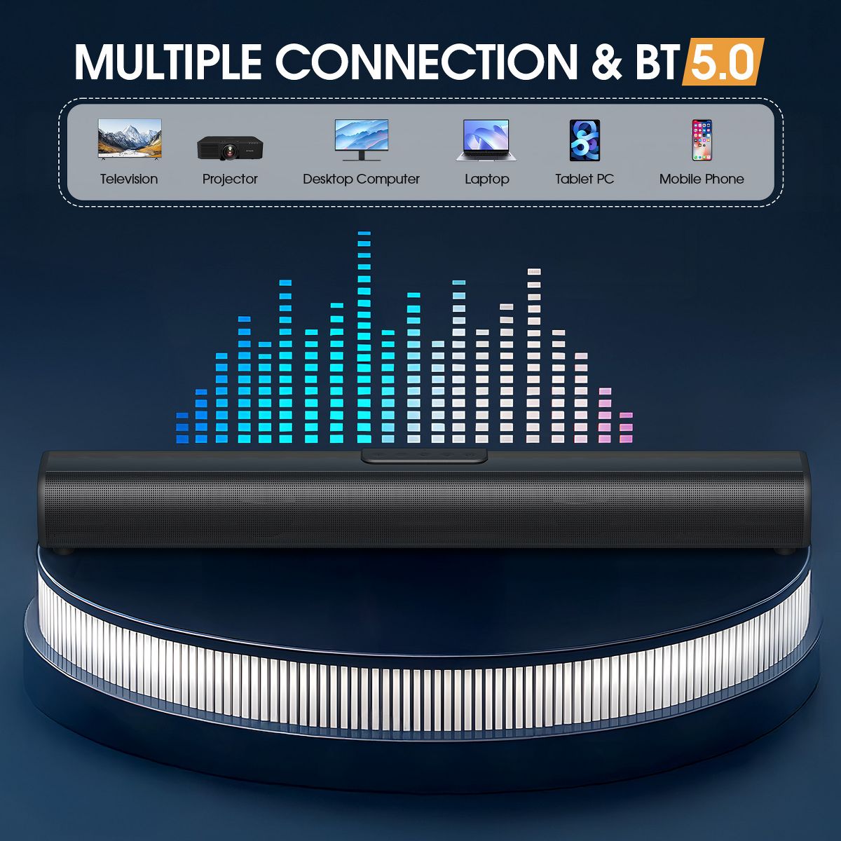SUGIFT 50W Bluetooth 5.0 Soundbar with 3D Surround Sound, Dual Full-Range Drivers, Wall Mountable, and Multiple Connection Modes