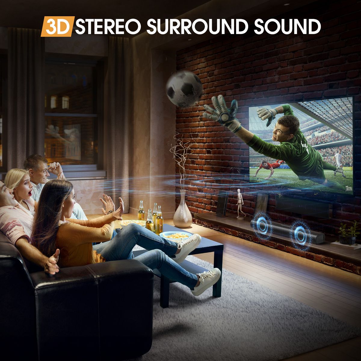 3D surround sound technology creates an immersive experience.