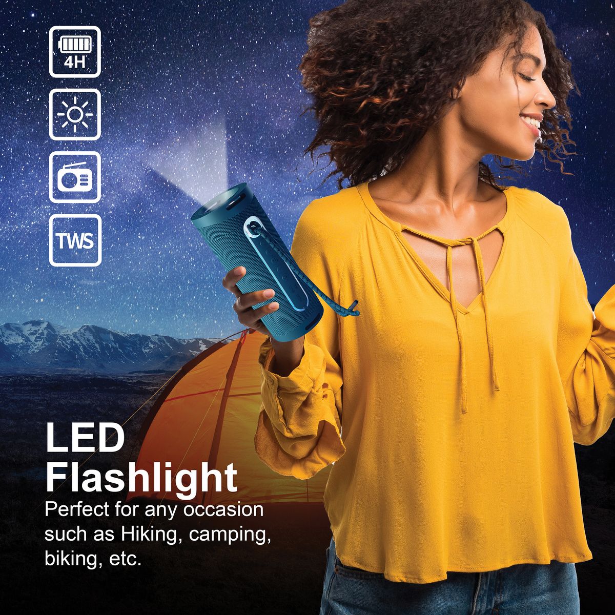 Take your music on the go with the Supersonic® SC-2340BT Portable Bluetooth® Speaker with Flashlight and Speakerphone. Experience rich stereo sound wirelessly with Bluetooth® 5.3 compatibility, allowing seamless connectivity with your favorite Bluetooth®-enabled devices. With its built-in microphone, the speaker lets you easily switch from enjoying your music to hands-free calling without missing a beat. FM radio, USB, and microSD™ Card compatibility offer additional playback options for your convenience. You can also explore the great outdoors with confidence thanks to the integrated LED flashlight, ideal for hiking, camping, biking, and more. The compact 2-in. speaker size of ensures portability without compromising on sound quality. And you’ll enjoy up to 4 hours of play time on a single charge, thanks to its built-in rechargeable battery. Elevate your adventures with the Supersonic® SC-2340BT and enjoy music and illumination in one compact package.