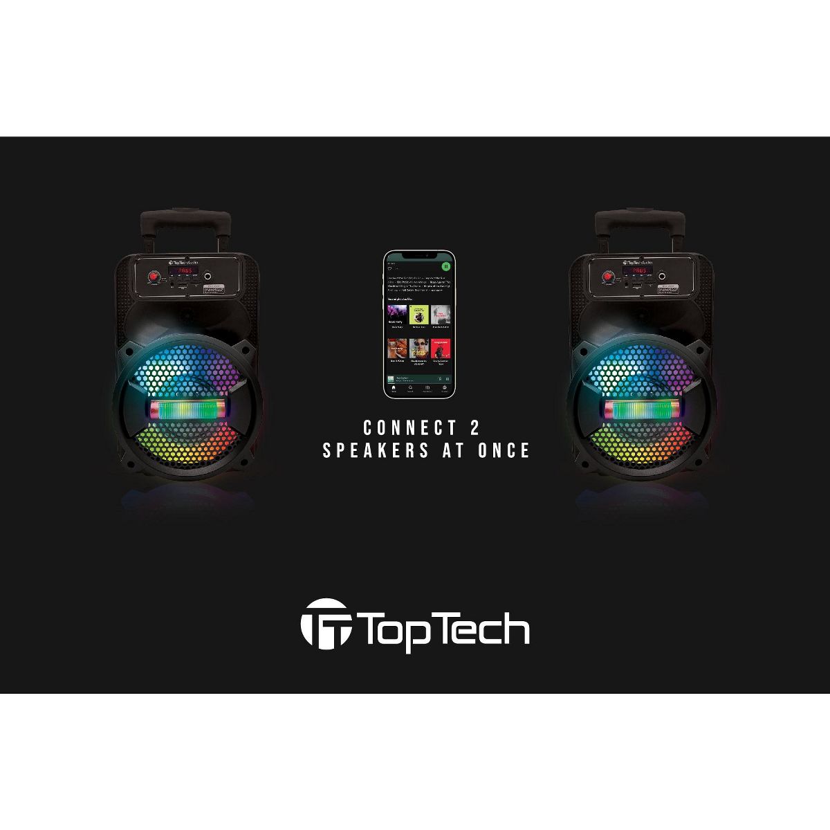 The TOPTECH Rock-8 comes with dazzling disco lights that sync with the music, creating a fun and lively atmosphere for parties or gatherings. The lights enhance the party vibe, making your event more exciting and visually engaging. Whether indoors or outdoors, these lights add an extra dimension to your music experience.