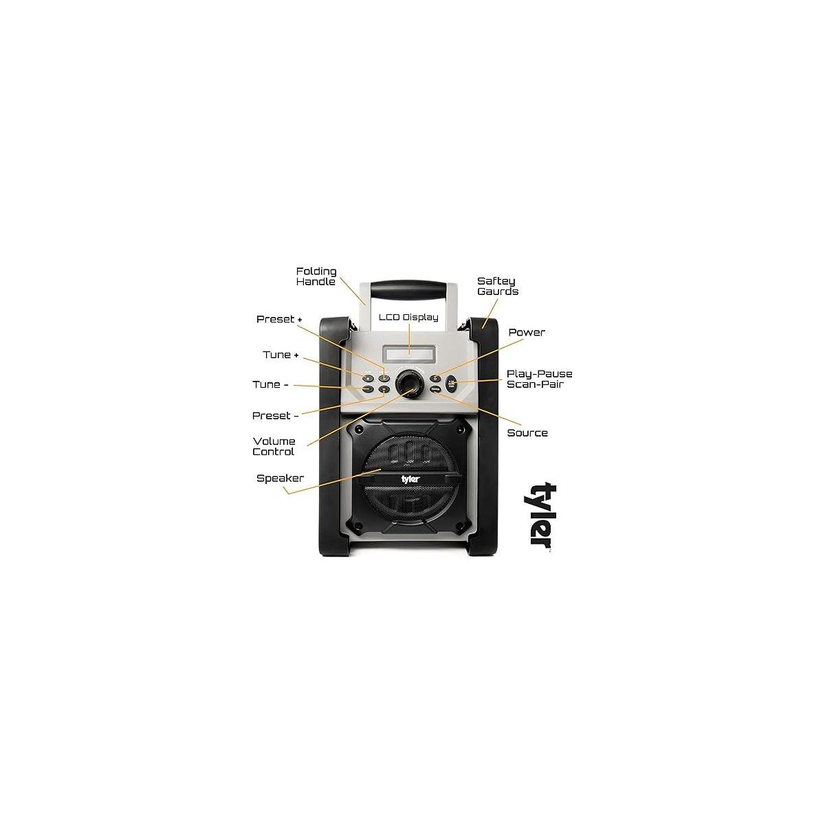 Tyler Bluetooth FM Jobsite Radio Speaker - IPX5 Water Resistant - Outdoor Indoor Durable Portable Speaker TWS407