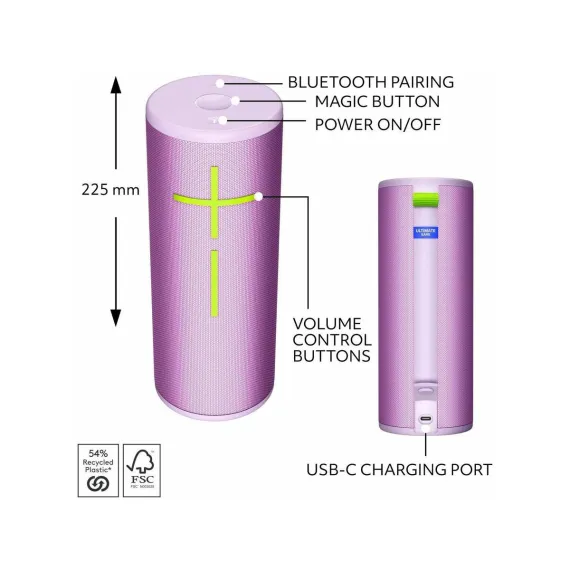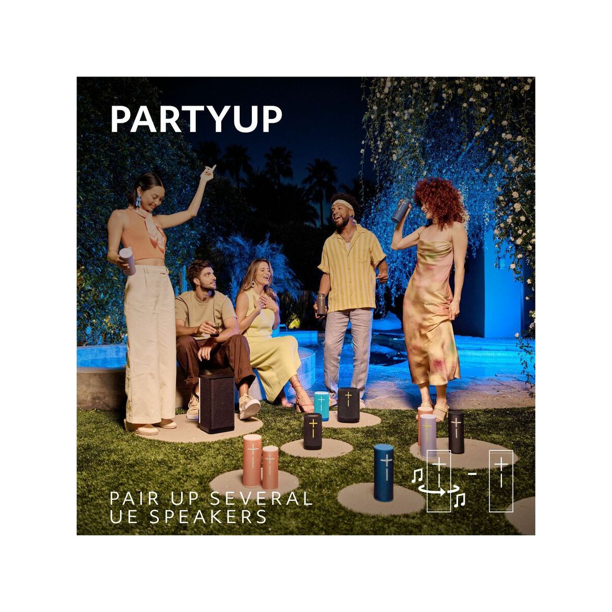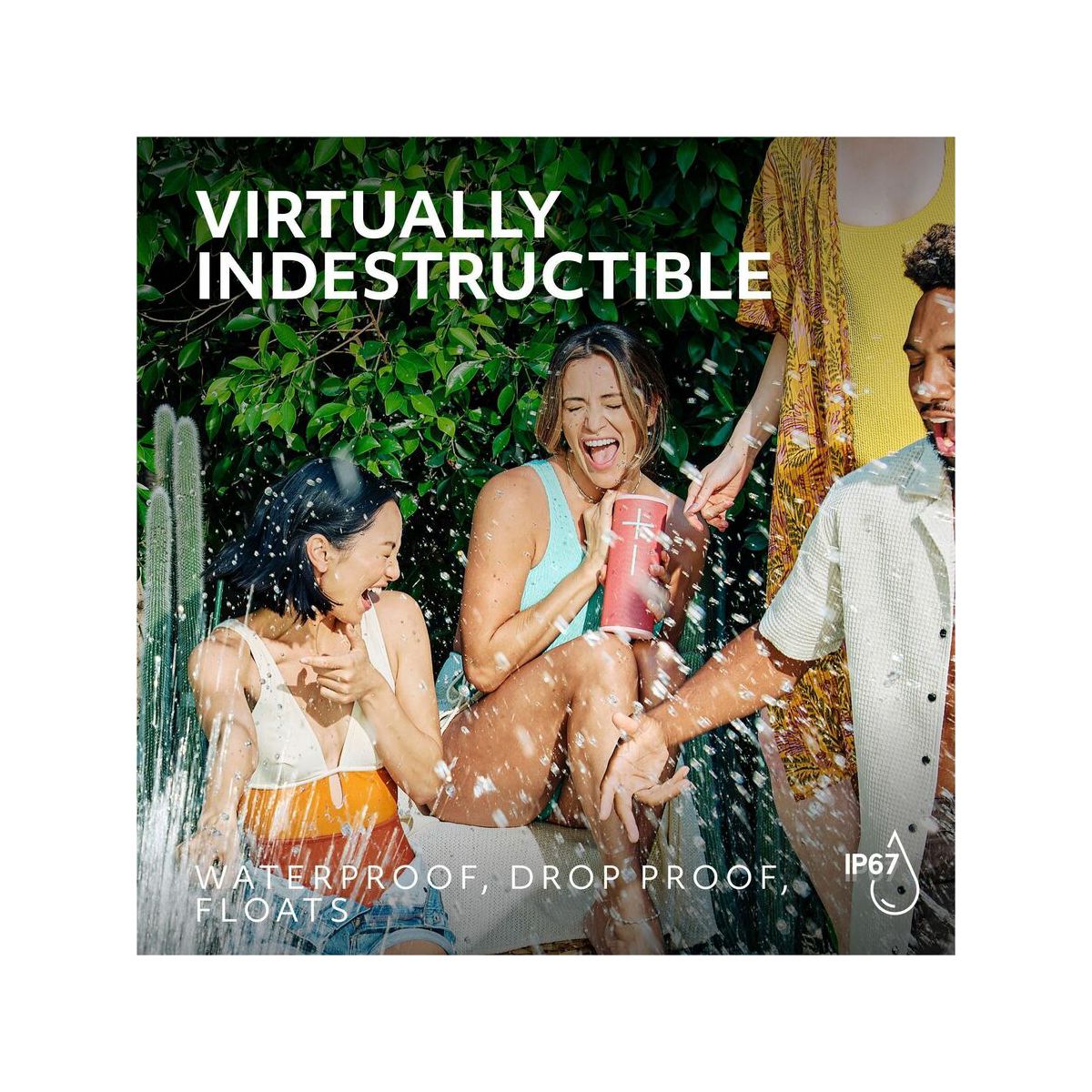 THUNDERING BASSMEGABOOM 4 delivers powerfully loud, clear and immersive 360 sound with thundering bass. It's even bassier than the previous generation. Featuring Ultimate Ears signature sound, you can hear every note which is carefully balanced.VIRTUALLY INDESTRUCTIBLEMEGABOOM 4 is built tough and ready for adventure.Dunk it. Splash it. Drench it. Crank it. MEGABOOM 4 is designed to get seriously wet and keep on booming.It's floatable too.You've got no worries using it in the pool, near the beach or even in the shower.20-HOUR MEGA POWERMEGABOOM 4 features a massive 20-hour battery life. will last almost a full day on a single charge.CONNECT SPEAKERS. PARTYUP FOR MORE FUNUse PartyUp on the UE | BOOM App to pair 1, 2 , 3... and over 150 speakers and create the ultimate sound experience. You can combine multiple BOOM 4, MEGABOOM 4, EVERBOOM, EPICBOOM and HYPERBOOM speakers or even pair them with previous generation BOOM speakers. Build a wall of sound? No problem.ONE TAP CONTROL WITH MAGIC BUTTONJust push the MAGIC BUTTON for convenient controls of any streaming music, Play, pause, and skip tracks directly from your MEGABOOM 4. Set up one-touch playlists on your favorite streaming platforms like Spotify, Amazon Music on Android,and Apple Music for iOS by UE | BOOM App.MADE WITH RECYCLED PLASTICPlastic parts in MEGABOOM 4 include a minimum of 54% certified post-consumer recycled plastic by weight. It's also designed for recycling.