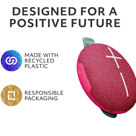Meet MINIROLL, the durable, compact speaker that gives you big sound - anywhere. A hookable strap lets you take your music along for the ride. Delivering surprisingly big bass and crisp sound in one portable package, with a whopping 12 hours of playtime on one charge. The rugged IP67 rating lets you submerge MINIROLL in 1 m of water for 30 minutes. It's dust-proof, and survives drops of up to 4 feet, or 1.2 meters. And with Auracast, you can pair several MINIROLL speakers to get extra loud. 131 feet, or 40 meters, of wireless range gives you total freedom to roam. Ultimate Ears by Logitech.