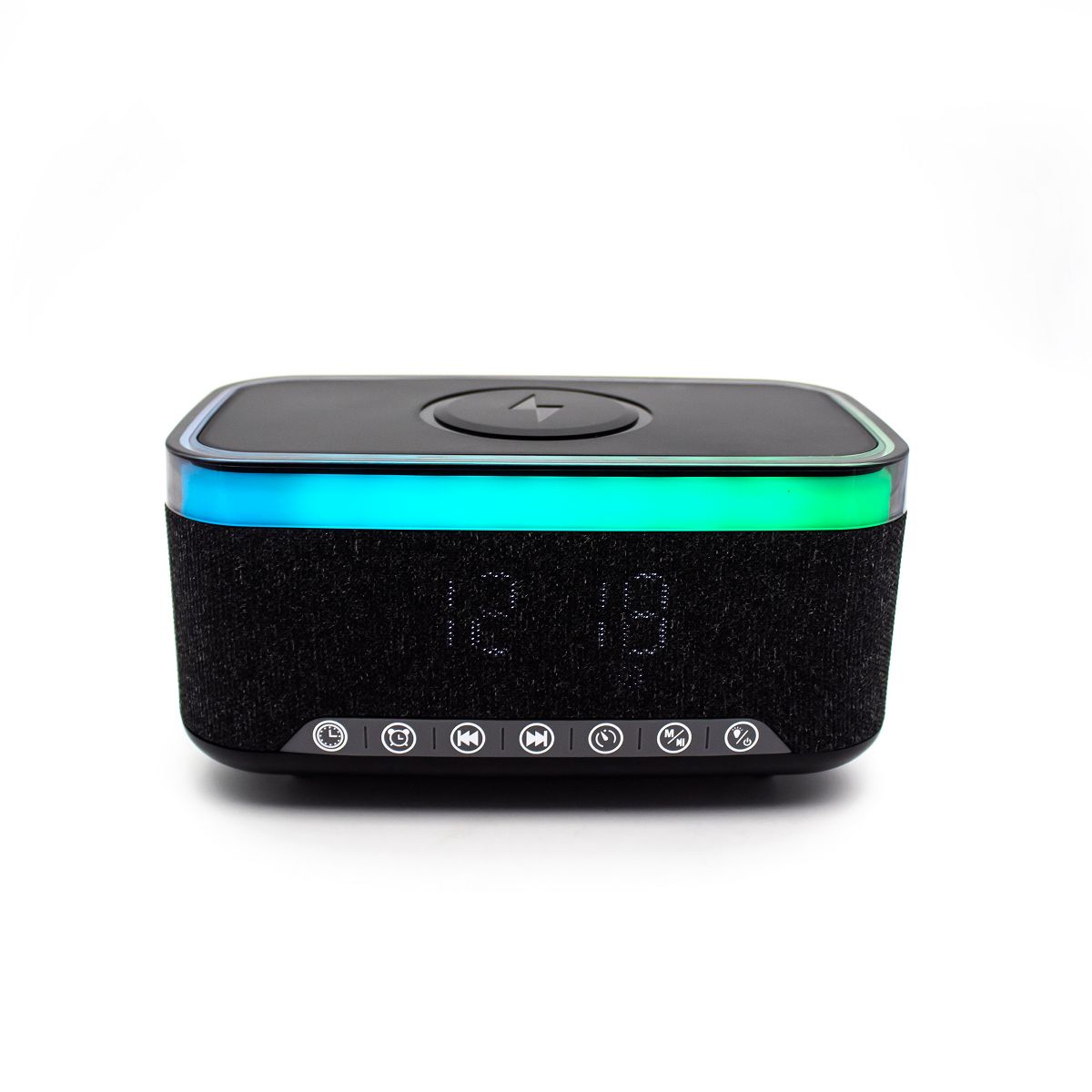 Wireless Charging Clock with Speaker. Sound Machine, FM Radio, Black
