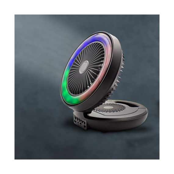 ZTECH Mini Music Player System with Fan, Portable Super Bass Speaker with LED Light, Black