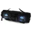 The Emerson EPB-3001 Dual-Subwoofer Bluetooth Boom Box with CD Player and Remote provides powerful, wall-to-wall sound. This high-tech, classic boombox features Bluetooth technology and delivers bass you can feel. Its sleek design with a sturdy, top carrying strap and disco lights adds convenient style to almost any audio setup. The boombox also serves as a portable audio media station with its AM/FM PLL stereo radio with analog tuning, CD/CD-R/CD-RW player, and USB input for MP3 music playback. It can also function as a PA system with its dual microphone and guitar 1/4-in. inputs! The included remote has its own storage compartment so it won't get lost when you're on the move.