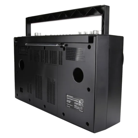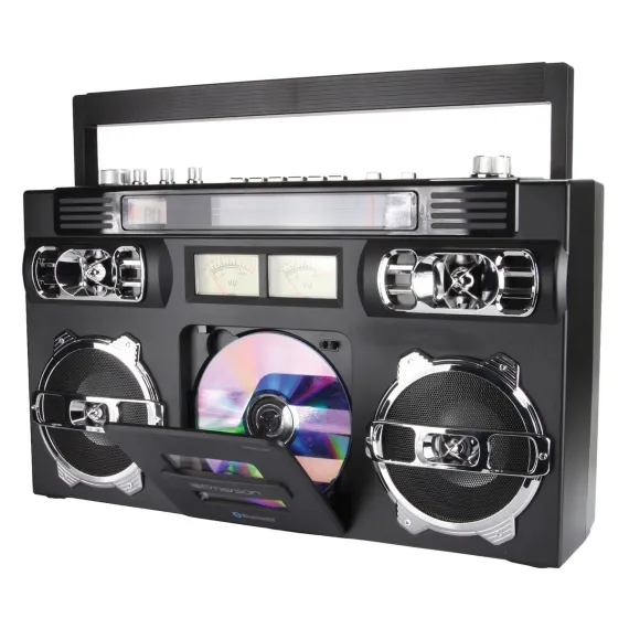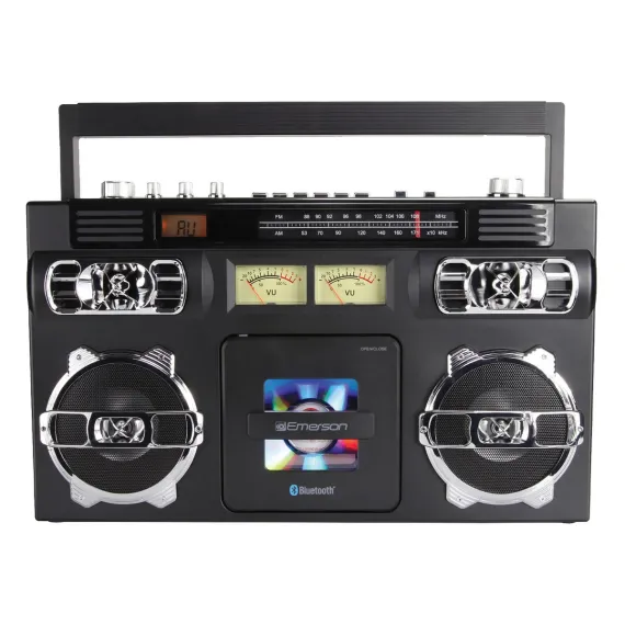 The Emerson® EPB-3004 Retro Boom Box is the ideal blend of classic functionality and modern convenience, making it the ultimate portable entertainment companion. With compatibility for CD, CD-R/RW, CD-MP3, crystal clear AM/FM stereo radio, and Bluetooth® audio streaming, this device redefines on-the-go audio experiences. It also has programmable memory for 20 tracks, user-friendly controls, old-school VU meters, dynamic high-performance speakers, an aux input jack, and a built-in rechargeable battery. Elevate your music and radio listening with this compact powerhouse, ensuring hours of entertainment wherever you are.