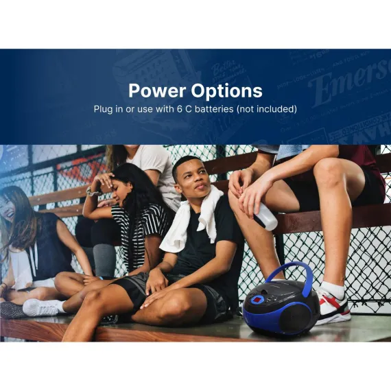 Take your favorite music wherever you go with Emerson™ Portable CD Player (EPB-3000). Stream music through the AM/FM radio feature and an AUX input. Listen to songs in a particular order with the player’s programmable memory to set up your own custom playlist. This CD/radio player also features a two-way power featuring both DC battery and AC power to enjoy your music on the go or at home.