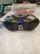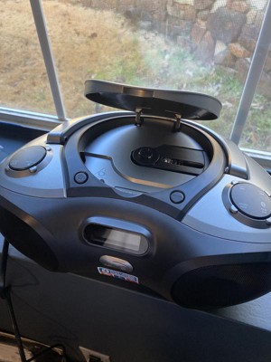 This boombox has built-in Bluetooth technology that allows you to stream music wirelessly from your Bluetooth device and a carrying handle for unrivaled control of your listening experience. You can also listen through the built-in speakers to your favorite CDs, enjoy the FM radio, or utilize the Aux in to play music from non-Bluetooth equipped devices.
